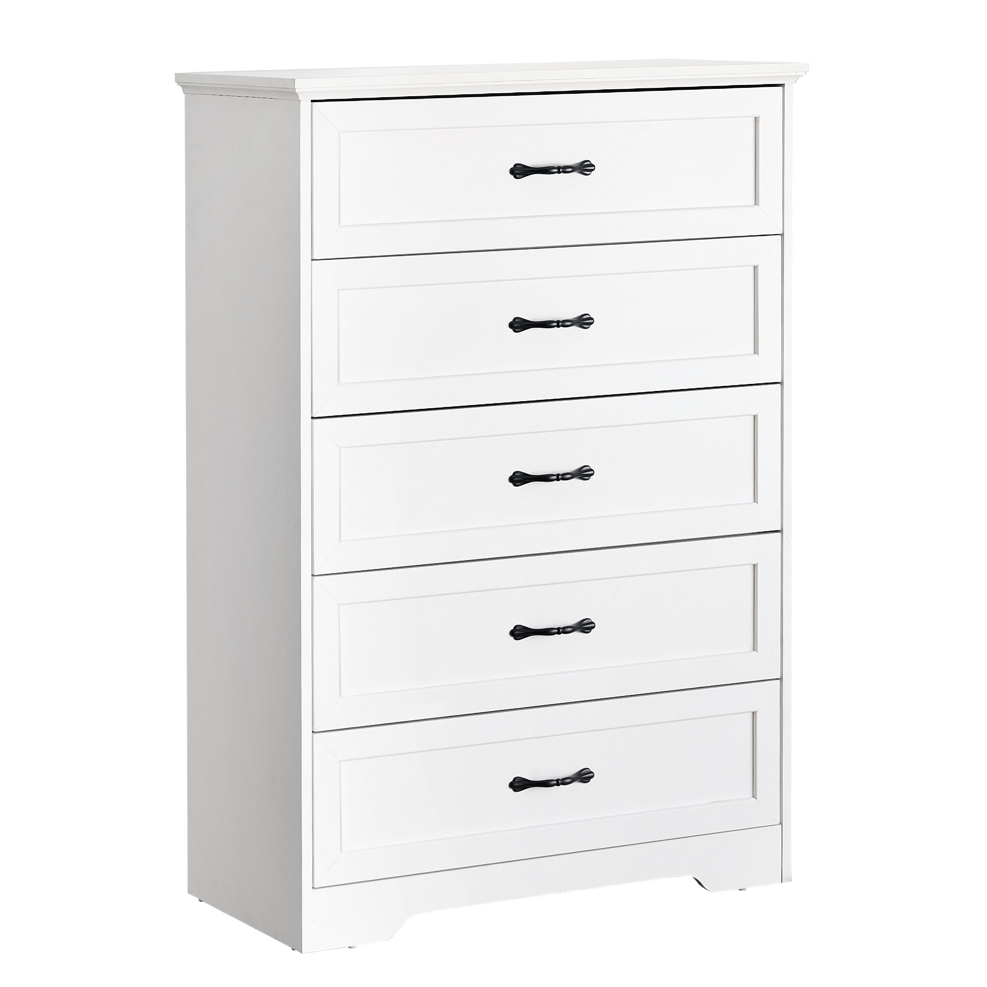 5 Drawers Dresser, Modern Wooden Tall Dresser with Deep Drawers, Chest of Drawers for Bedroom, Living Room, Hallway