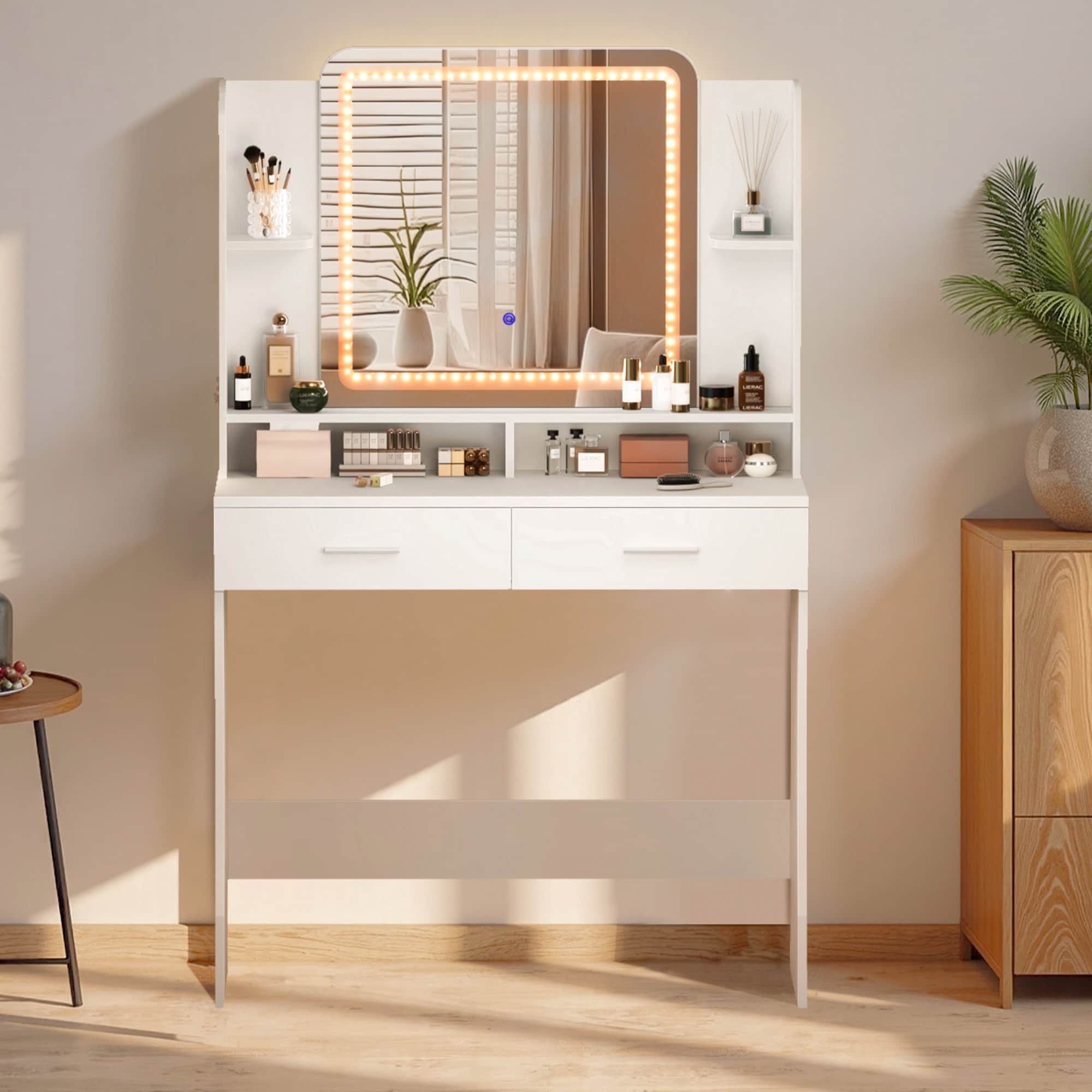 White Bedroom Makeup Vanity Dressing Desk Table with Adjustable Lighted Mirror