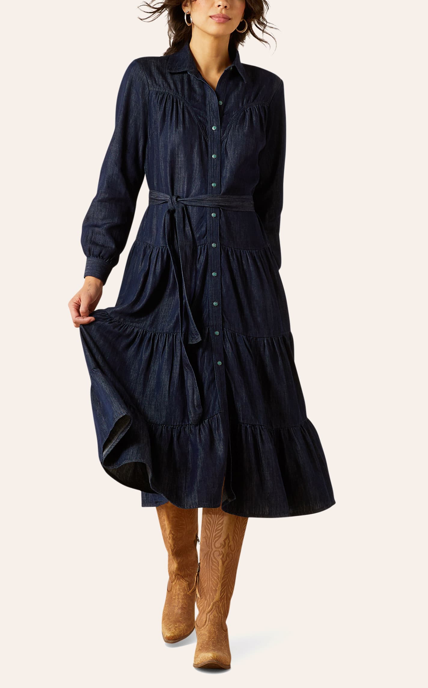 Ariat Women's Sahara Blue Denim Tiered Dress - L - From Cavender's