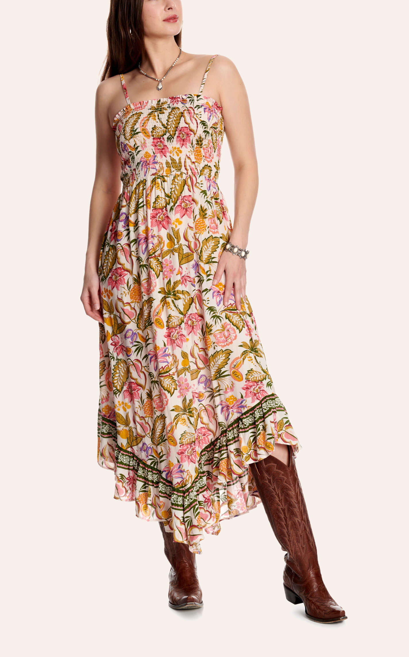 Angie Women's Ivory Floral Print Smocked Dress - M - From Cavender's