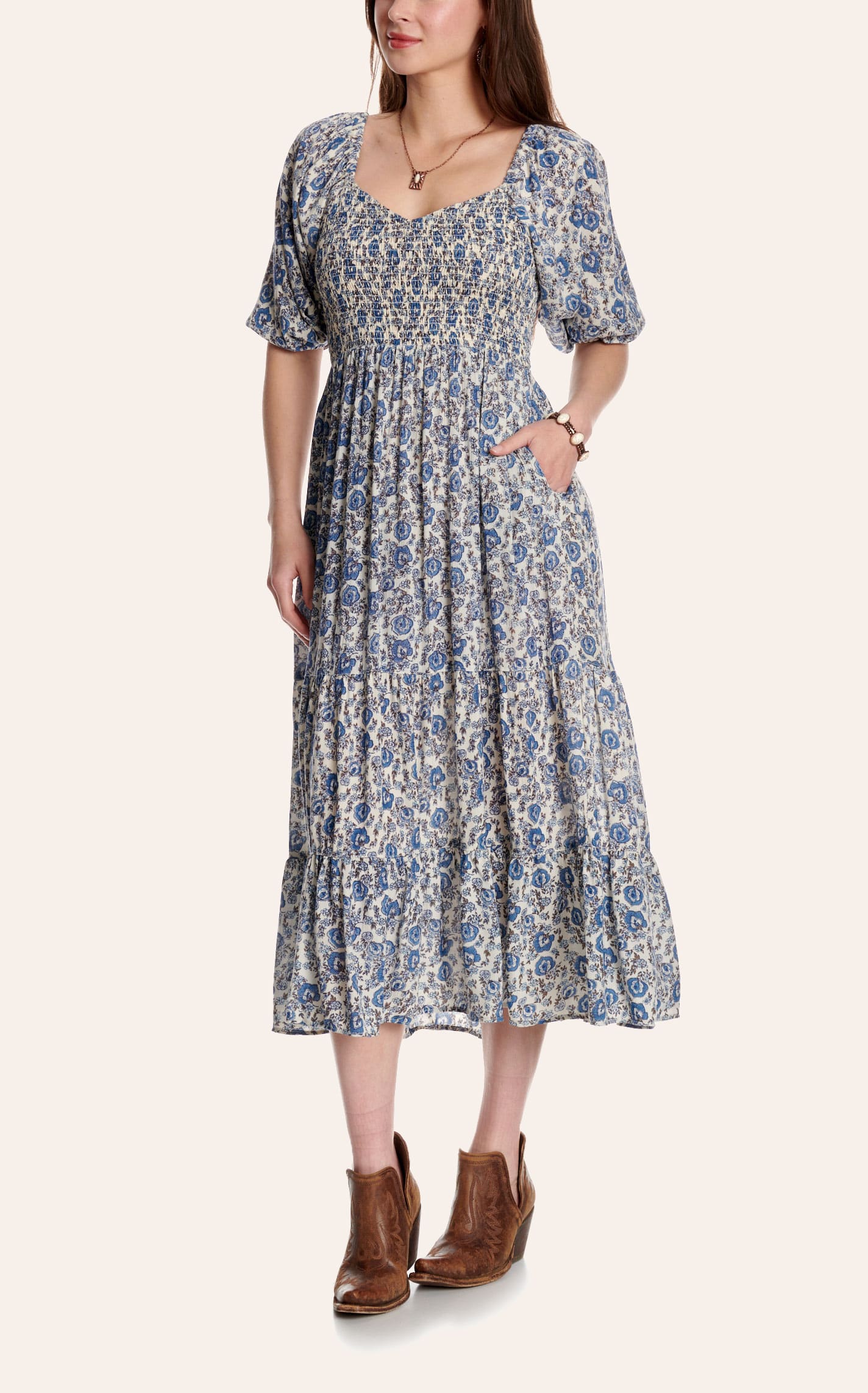 Wrangler Women's Sky Blue & White Smocked Paisley Print Mini Dress - M - From Cavender's