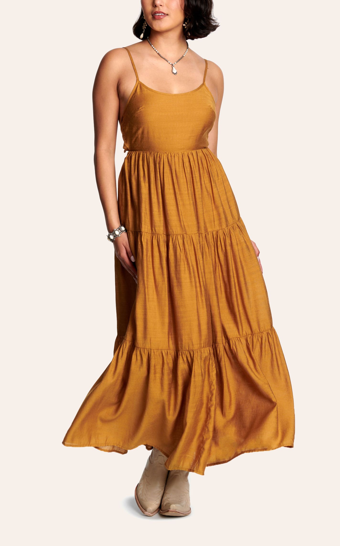 Yura Women's Camel Bow Back Tiered Maxi Dress - M - From Cavender's