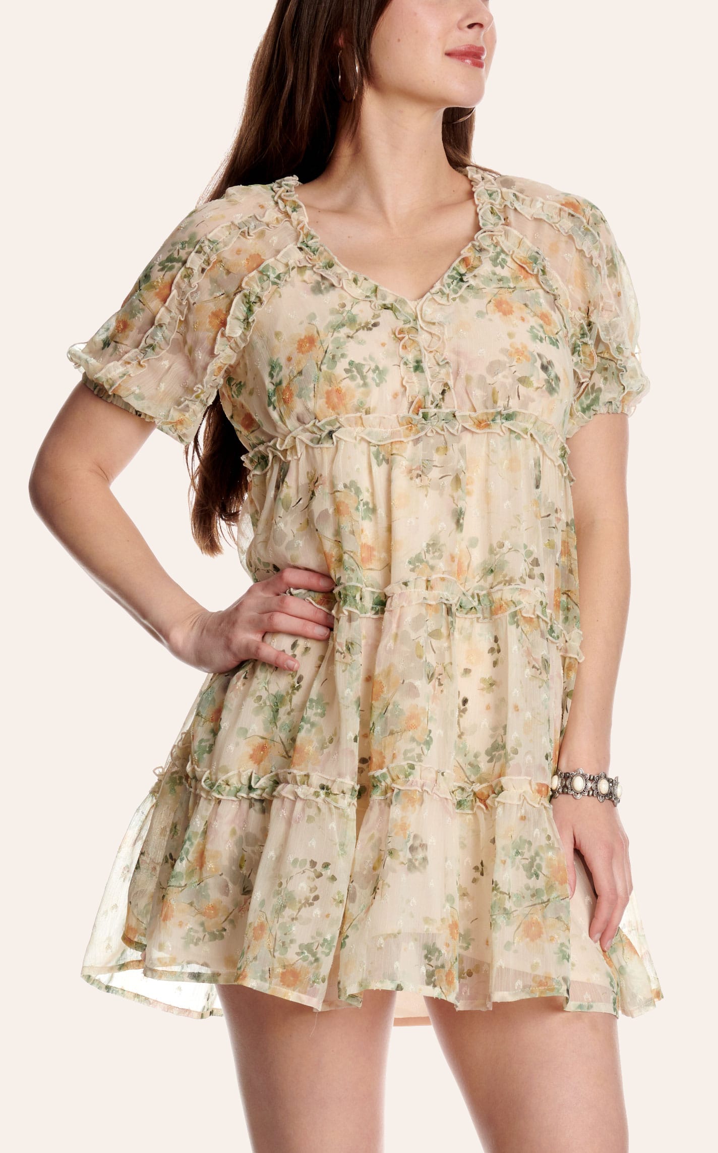 Endless Blu Women’s Beige Floral Puff Sleeve Midi Dress - M - From Cavender's - Women's
