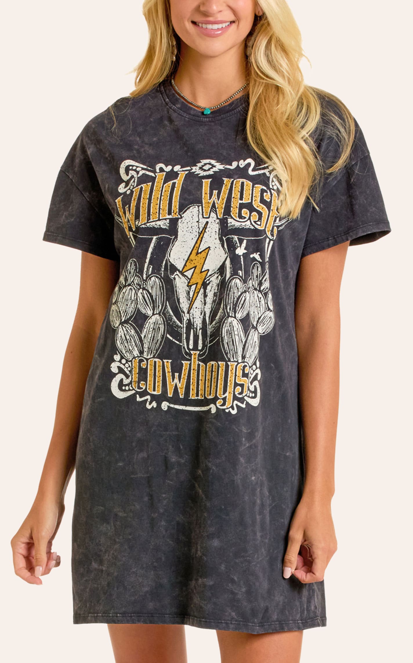 Rock & Roll Denim Women's Gray Wild West Cowboys Graphic T-Shirt Dress - S - From Cavender's