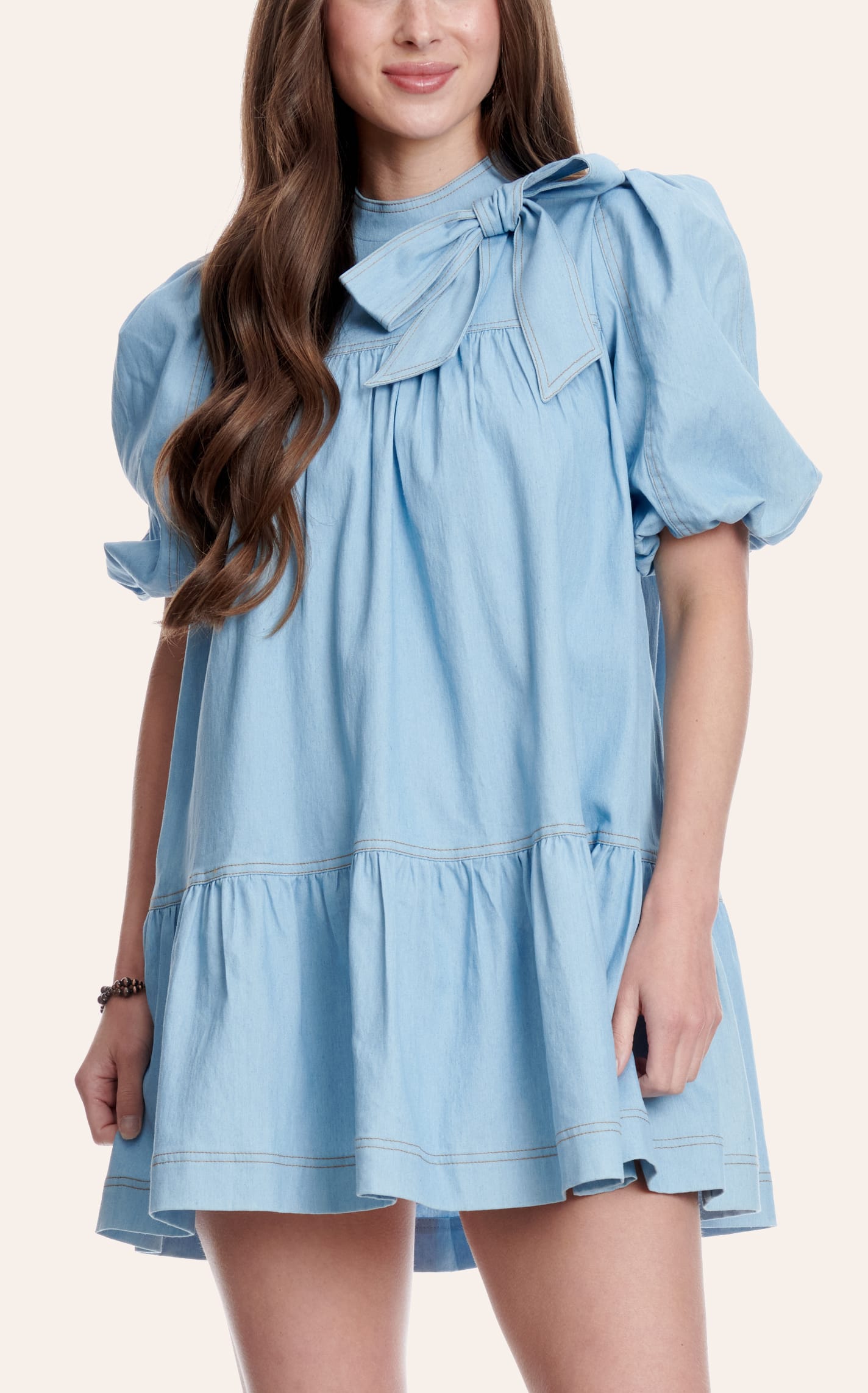 Pretty Follies Girl's Medium Wash Denim Dress With Bow - L - From Cavender's - Women's