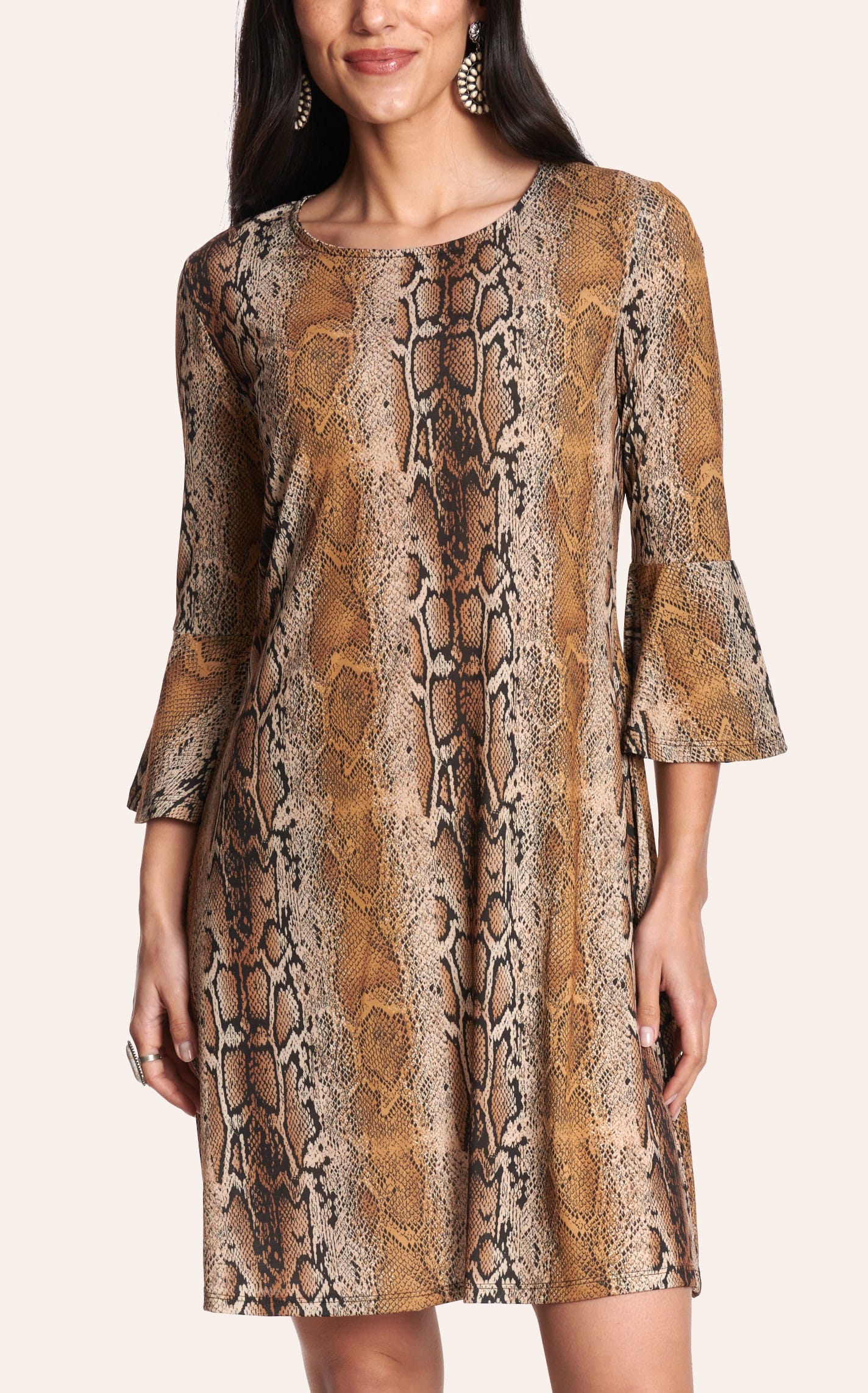 R.Rouge Women's Rich Snake Print Bell Sleeve Dress - L - From Cavender's
