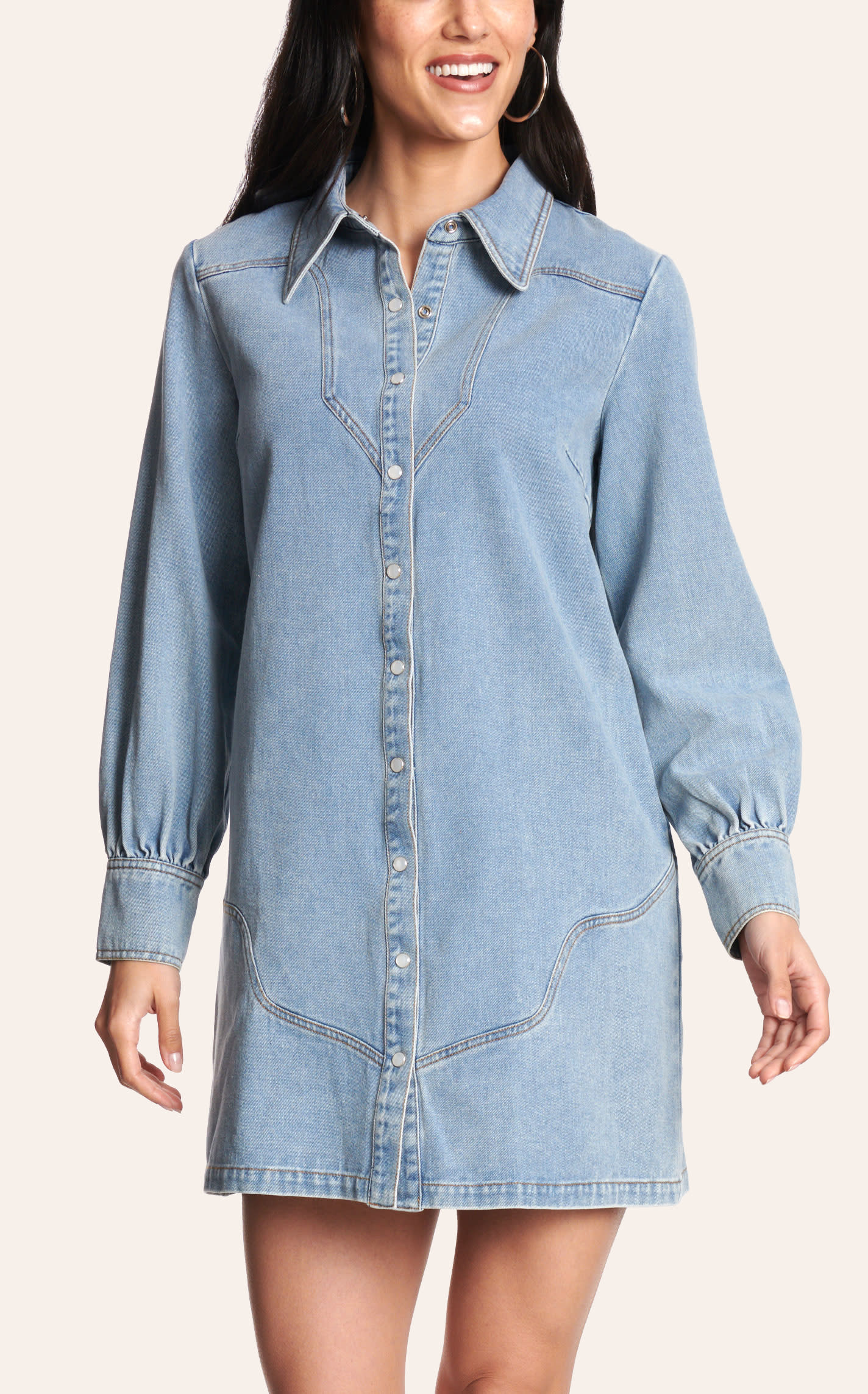 Rockin' C Women's Light Wash Denim Western Shirt Dress - L - From Cavender's