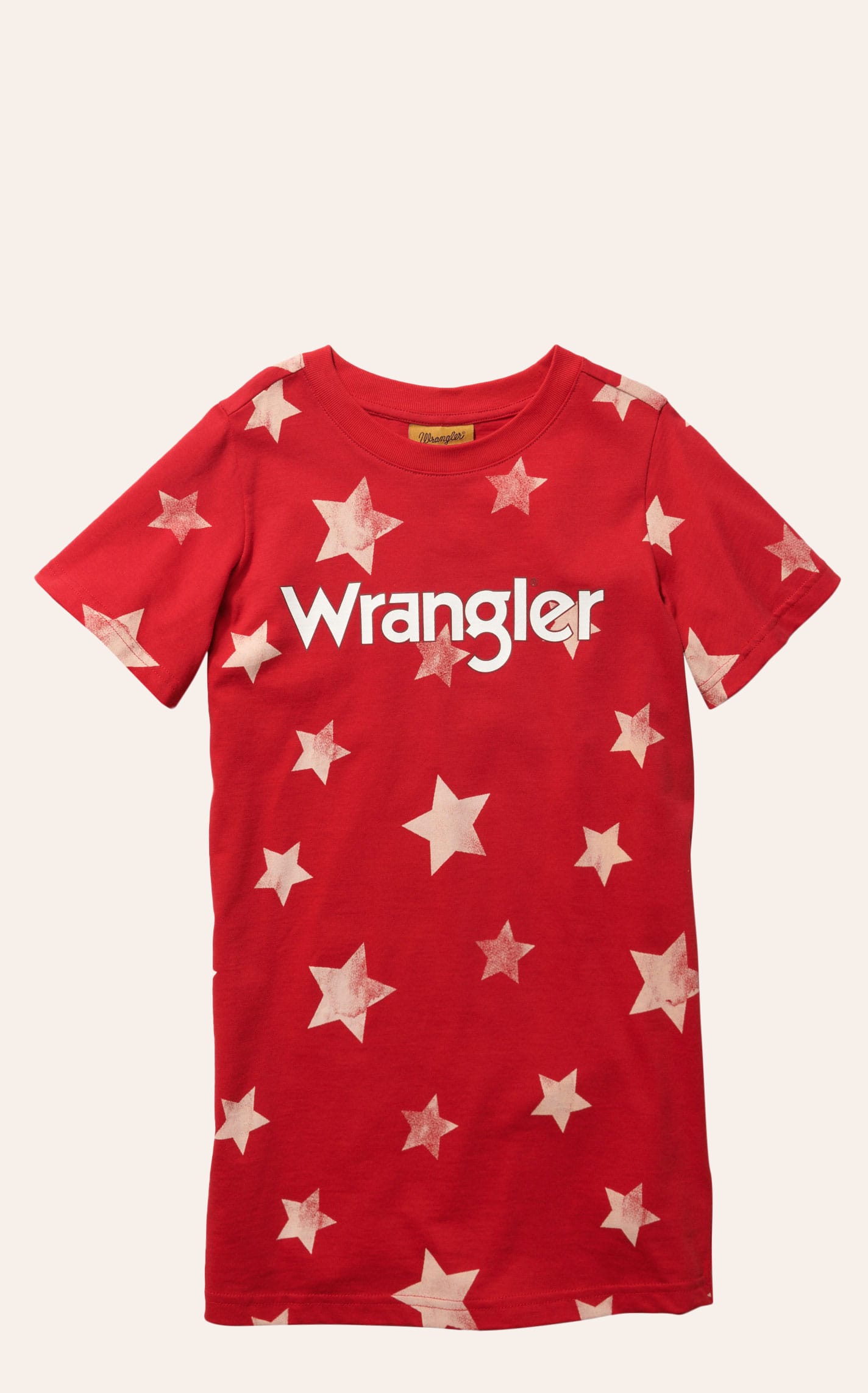 Wrangler Girl's Red Stars & Logo Graphic Short Sleeve T-Shirt Dress - M - From Cavender's