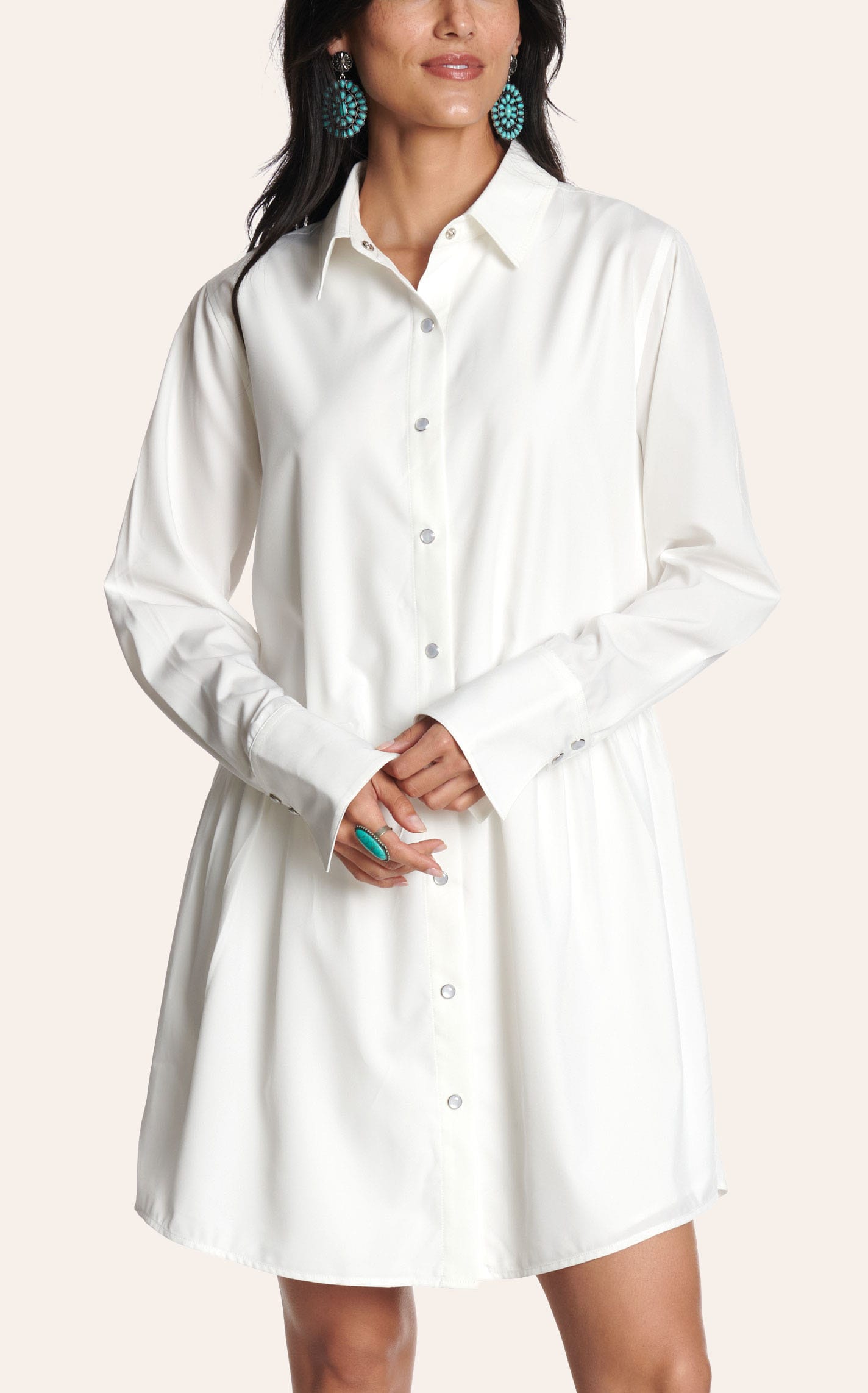 Rockin' C Women's White Long Sleeve Snap Front Shirt Dress - M - From Cavender's