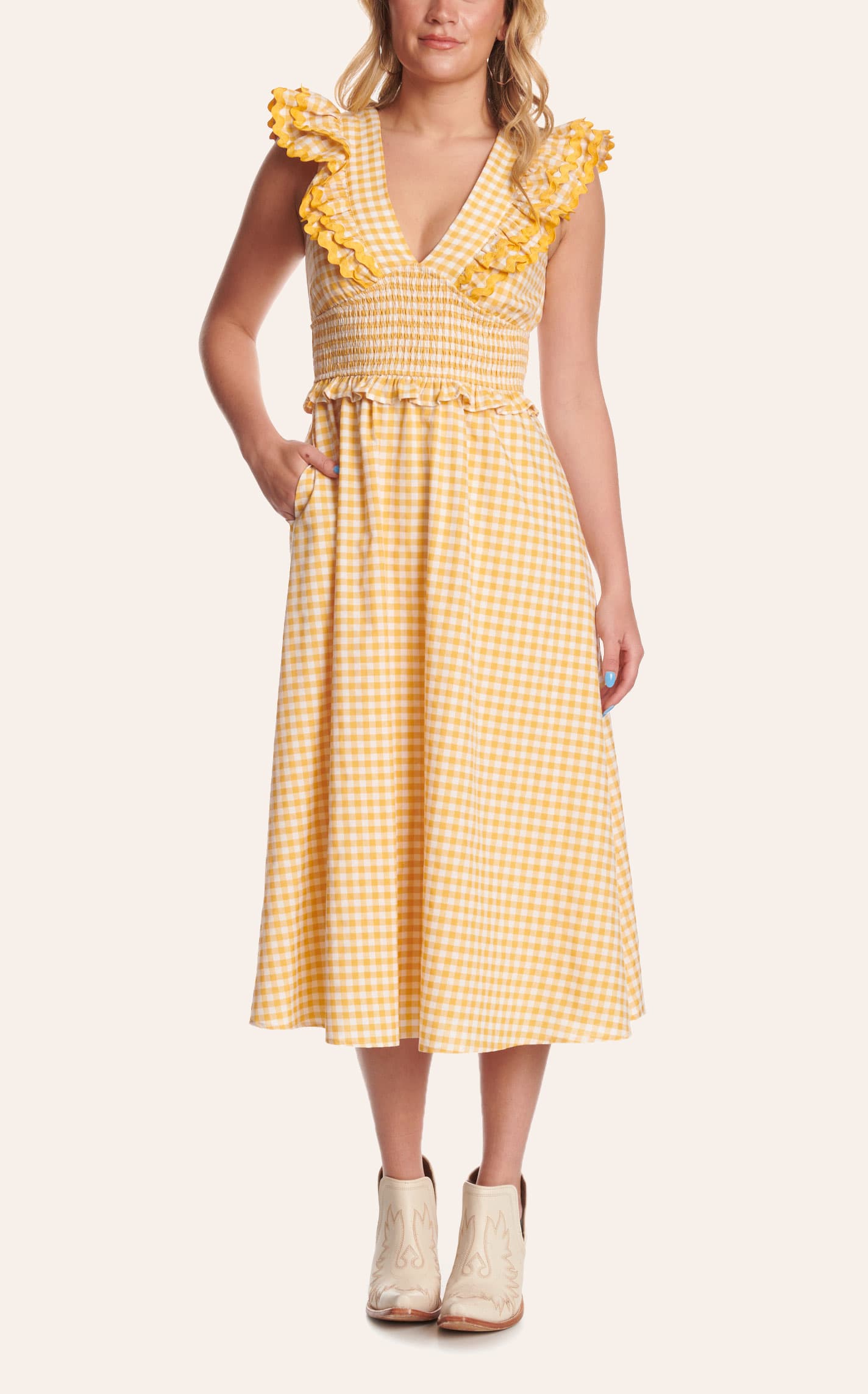 Pretty Follies Yellow Gingham Print Maxi Dress - L - From Cavender's - Women's