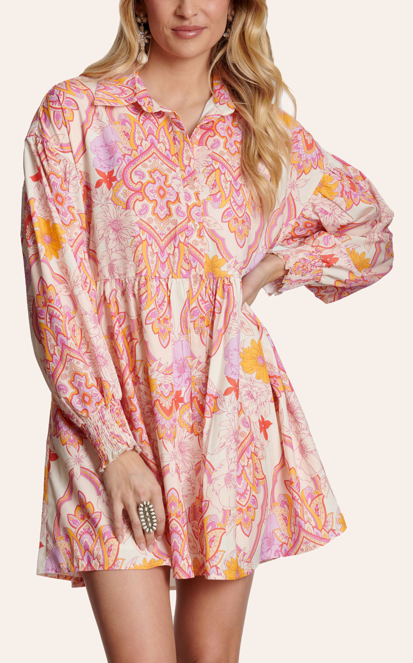TCEC Women's Latte & Lavender Retro Print Dress - M - From Cavender's