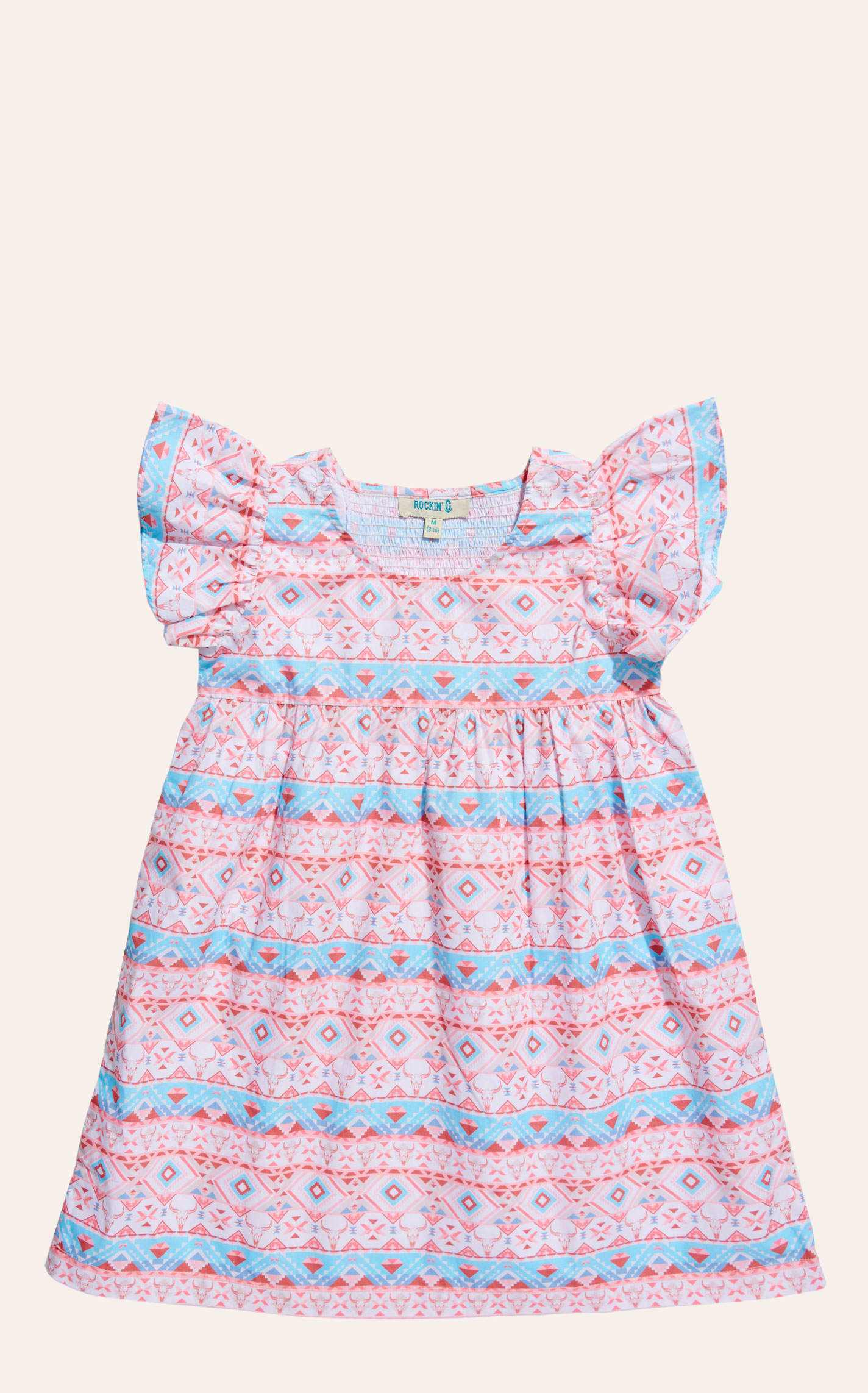 Rockin C Girl's Aztec Print Ruffled & Smocked Dress - L - From Cavender's