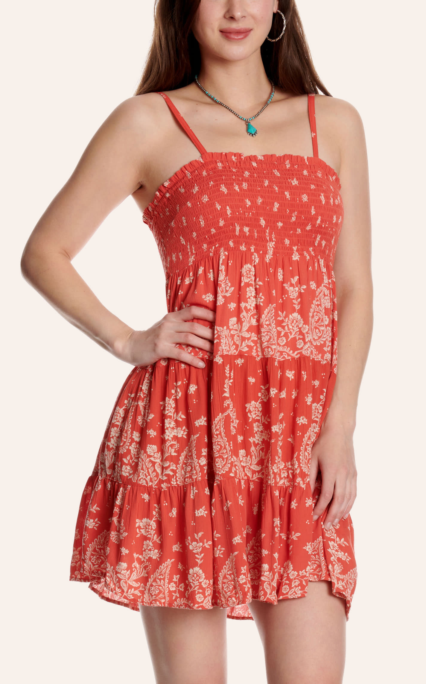 Angie Women's Flame Bandana Print Smocked Dress - M - From Cavender's