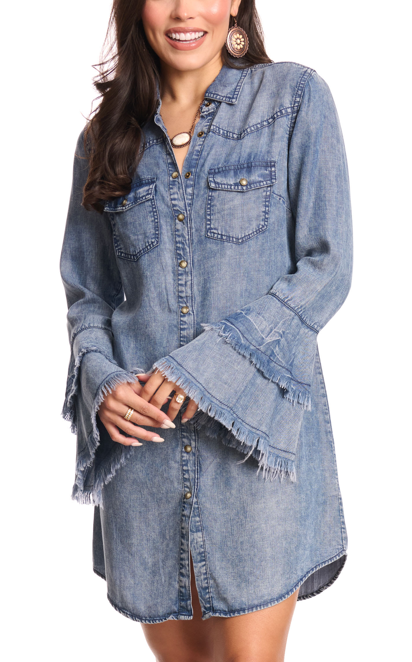 Rockin' C Women's Medium Wash Denim Frayed Shirt Dress - S - From Cavender's