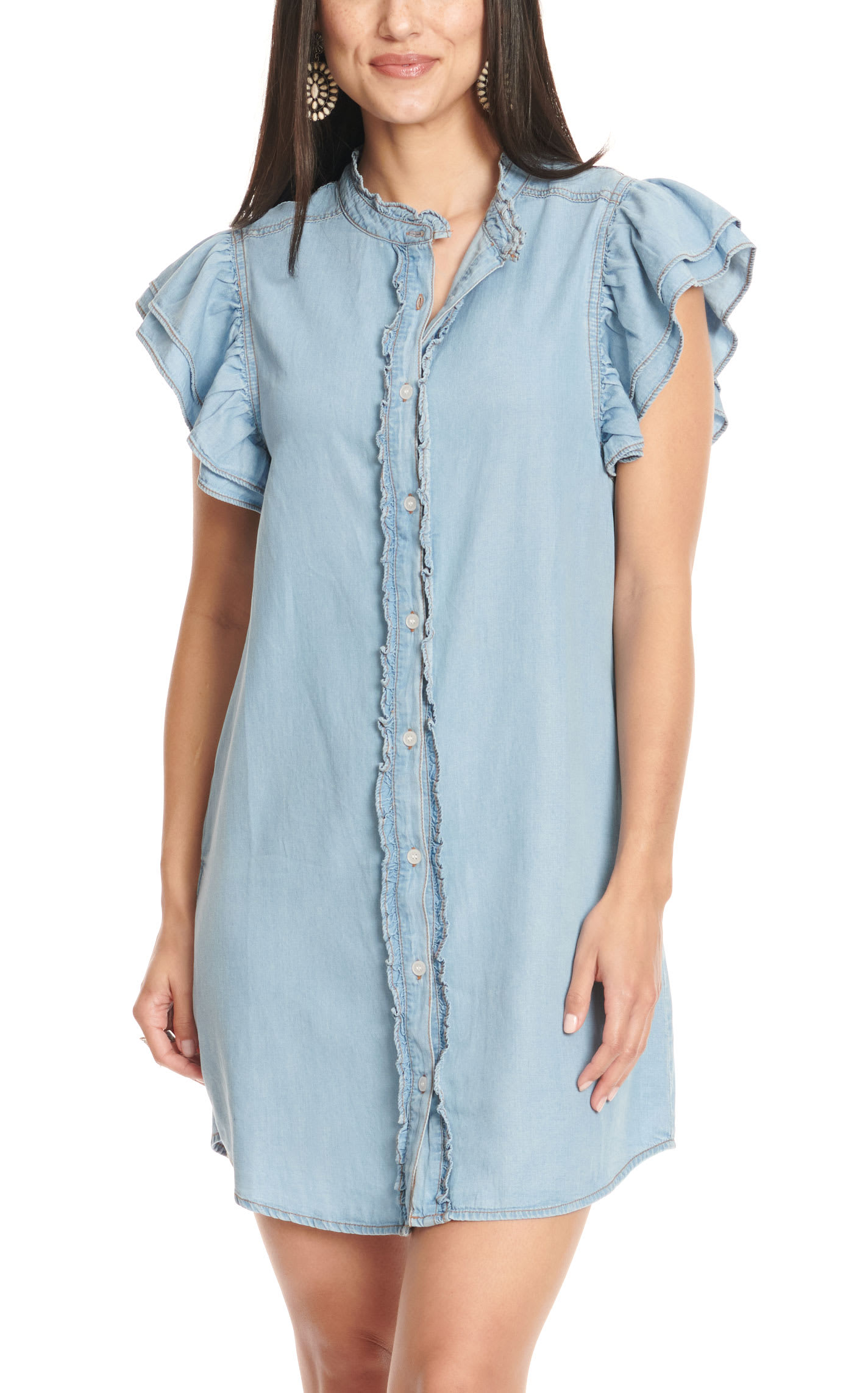 Rockin C Women's Blue Chambray Flutter Ruffle Sleeveless Dress - S - From Cavender's