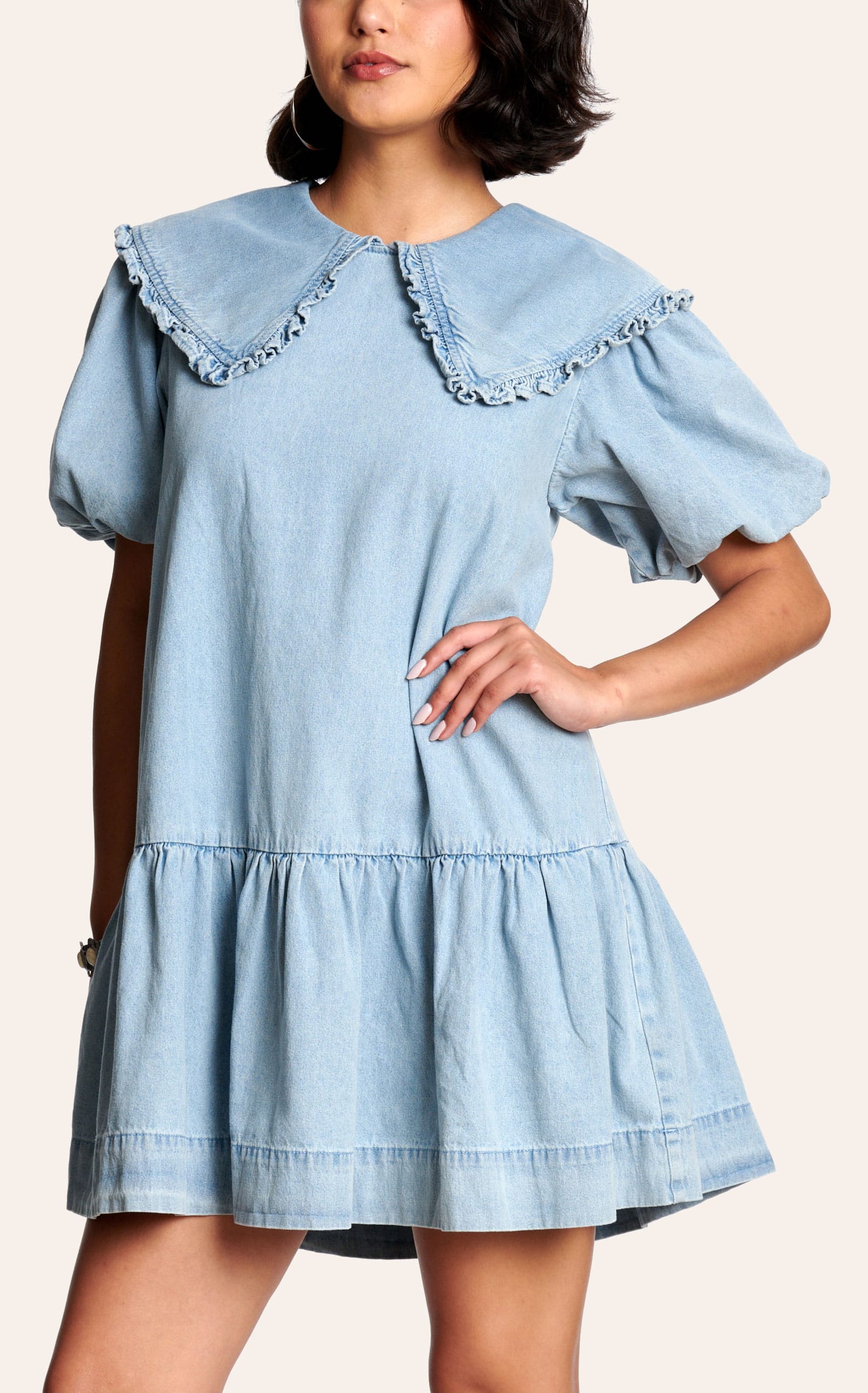 Boom Boom Jeans Women's Light Stonewash Denim Ruffle Dress - L - From Cavender's