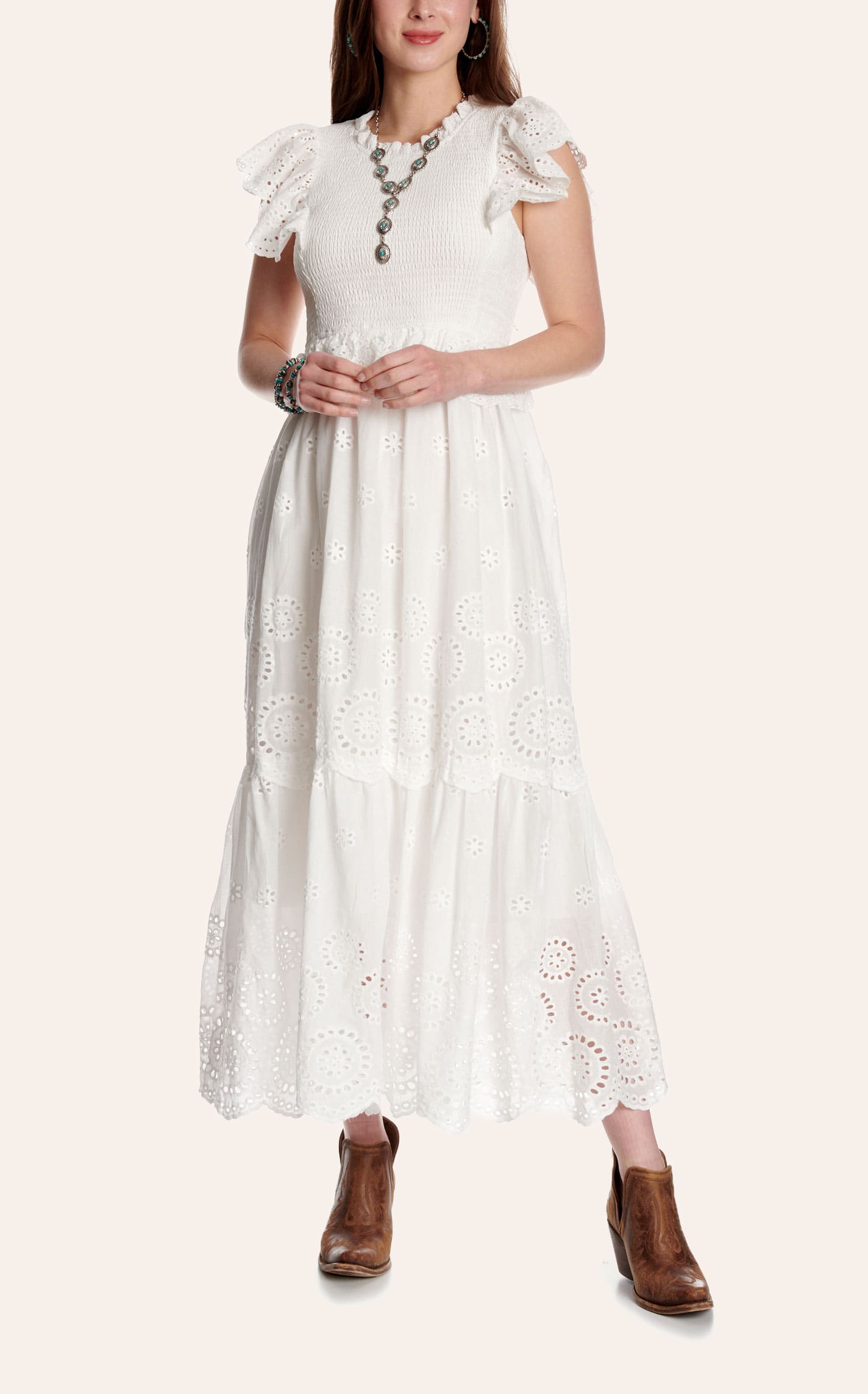 TCEC Women's Off White Smocked Lace Dress - M - From Cavender's