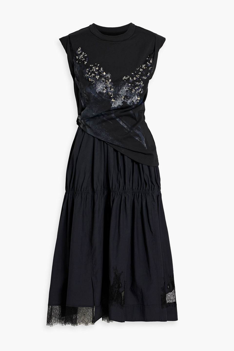 3.1 Phillip Lim Embellished jersey-paneled TENCEL™ and cotton-blend midi dress - Black - XS