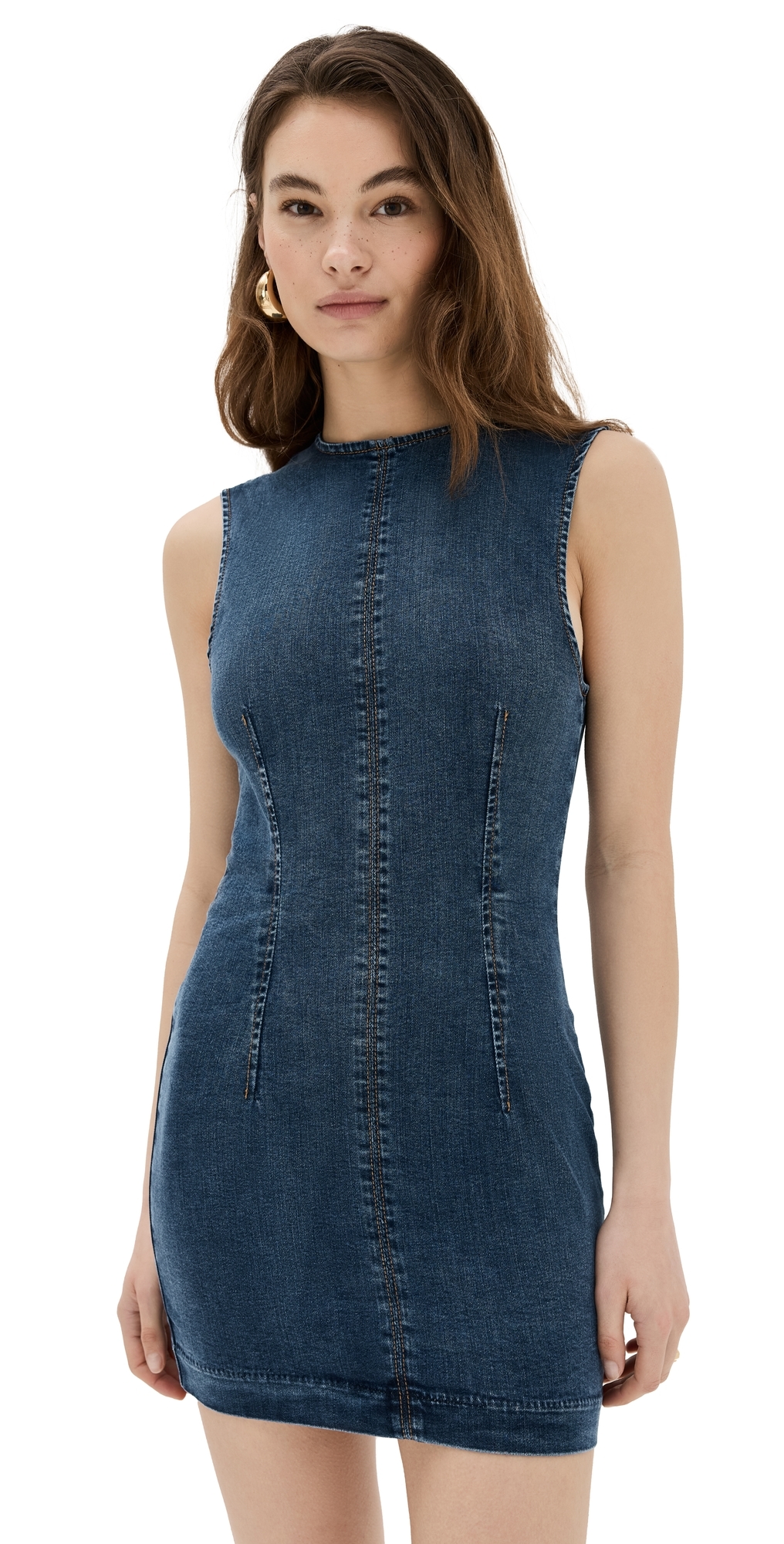 Tommy Jeans retro flag denim overalls dress in mid wash-Blue