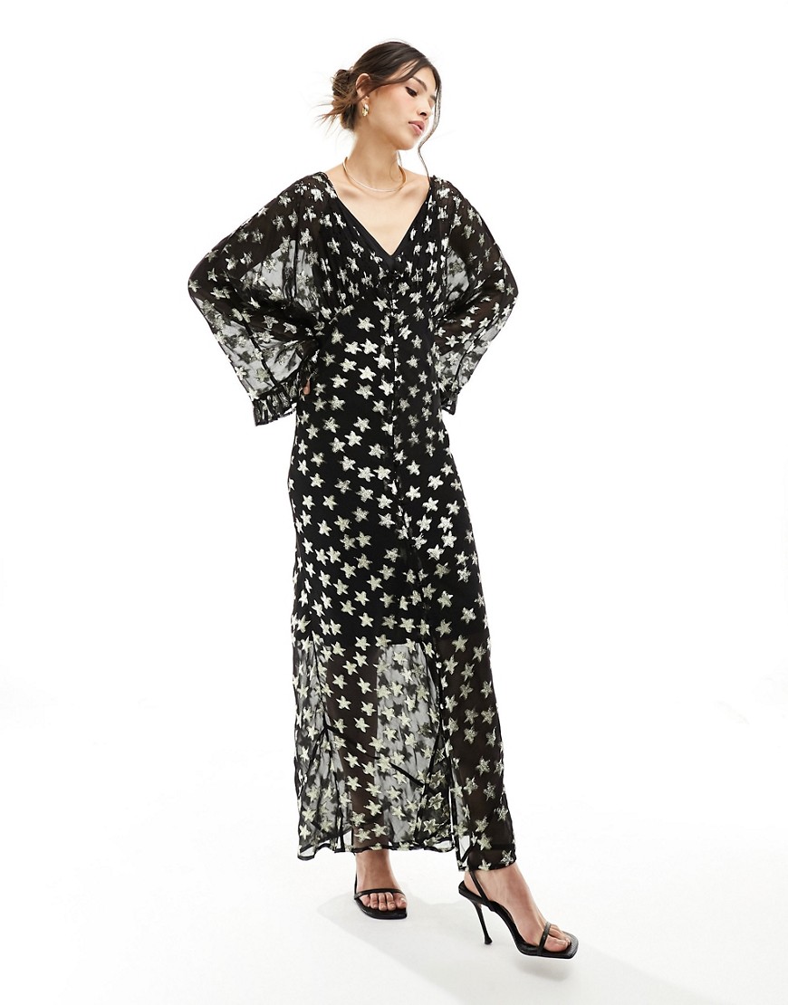 NEVER FULLY DRESSED metallic jacquard star midaxi dress in black and gold