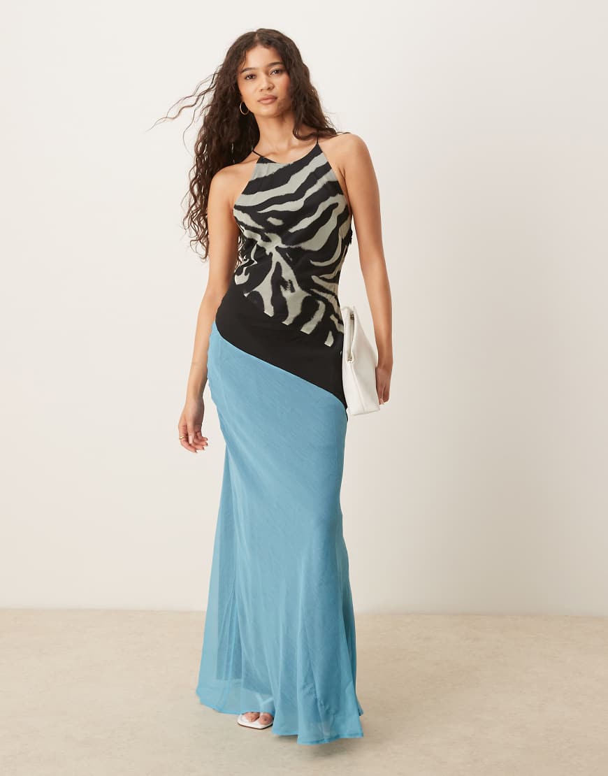 ASOS DESIGN racer neck slip midi dress with seam details in zebra print-Multi