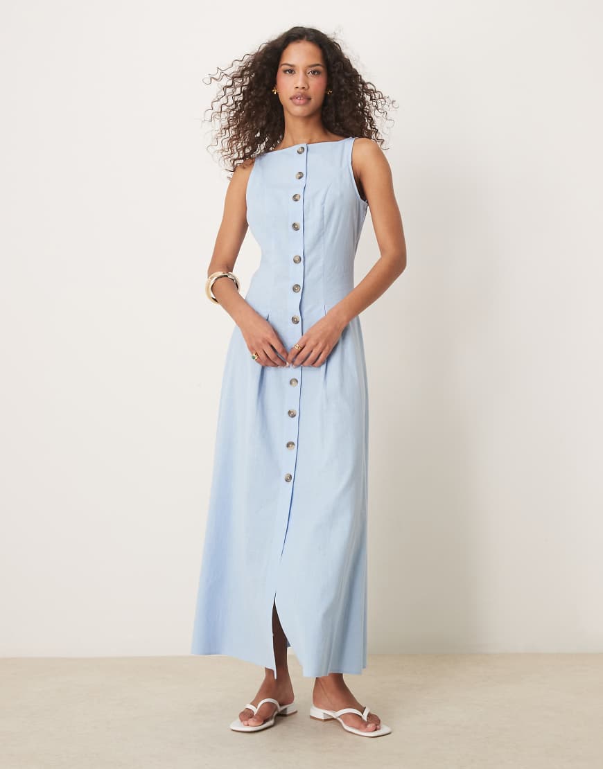 ASOS DESIGN slash neck button down vest maxi dress in blue