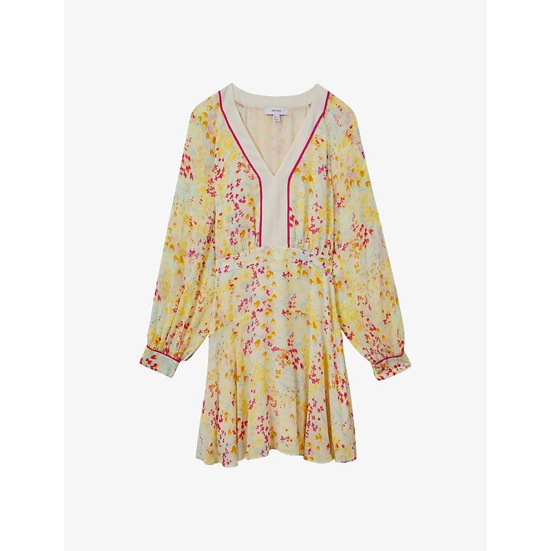 Reiss Womens Pink/yellow Molly Buttercup-print V-neck Woven Mini Dress