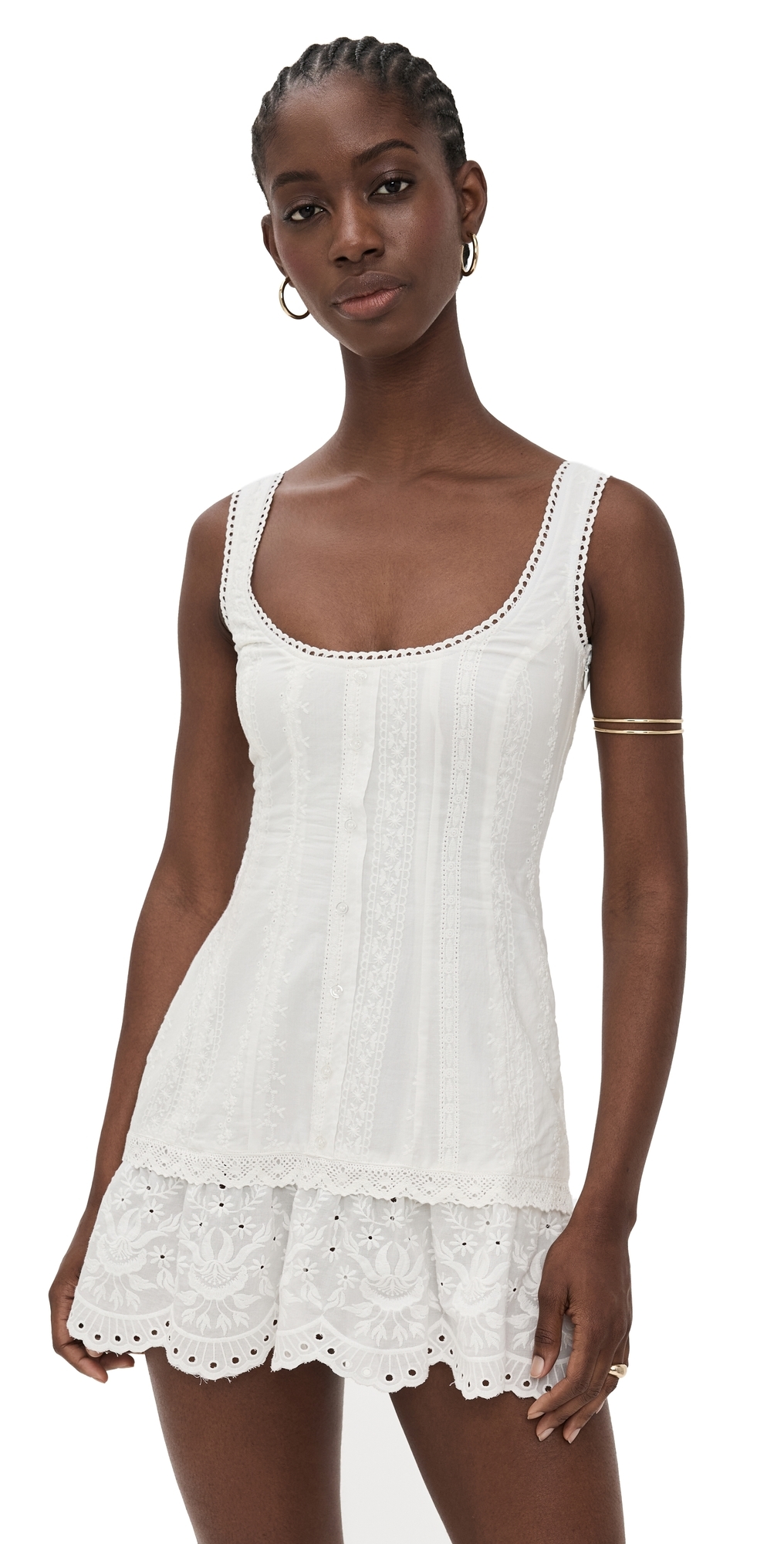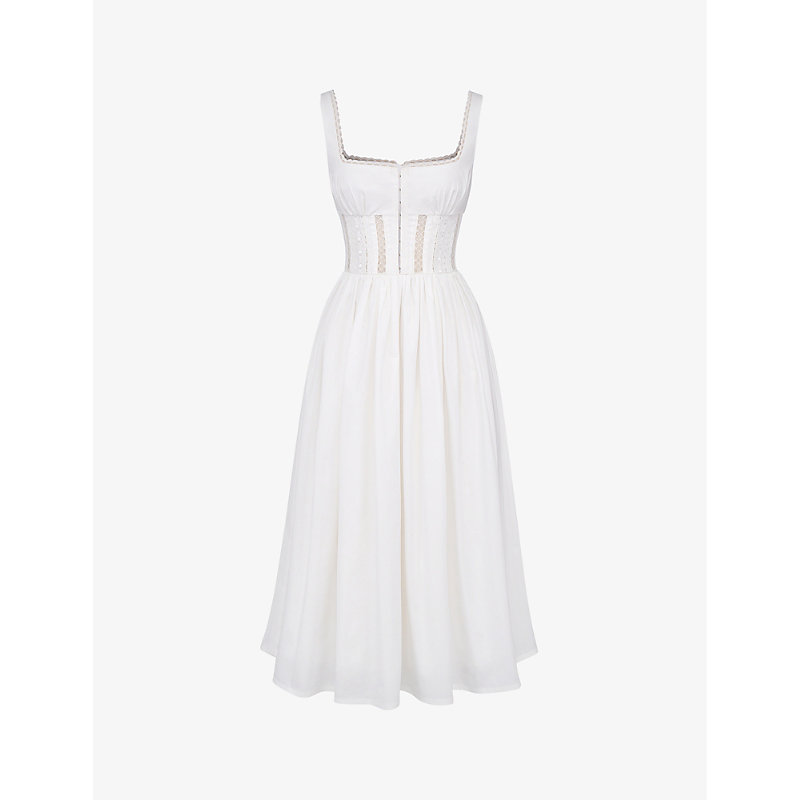 House OF CB Womens White Perle Lace-trim Stretch-cotton Midi Dress
