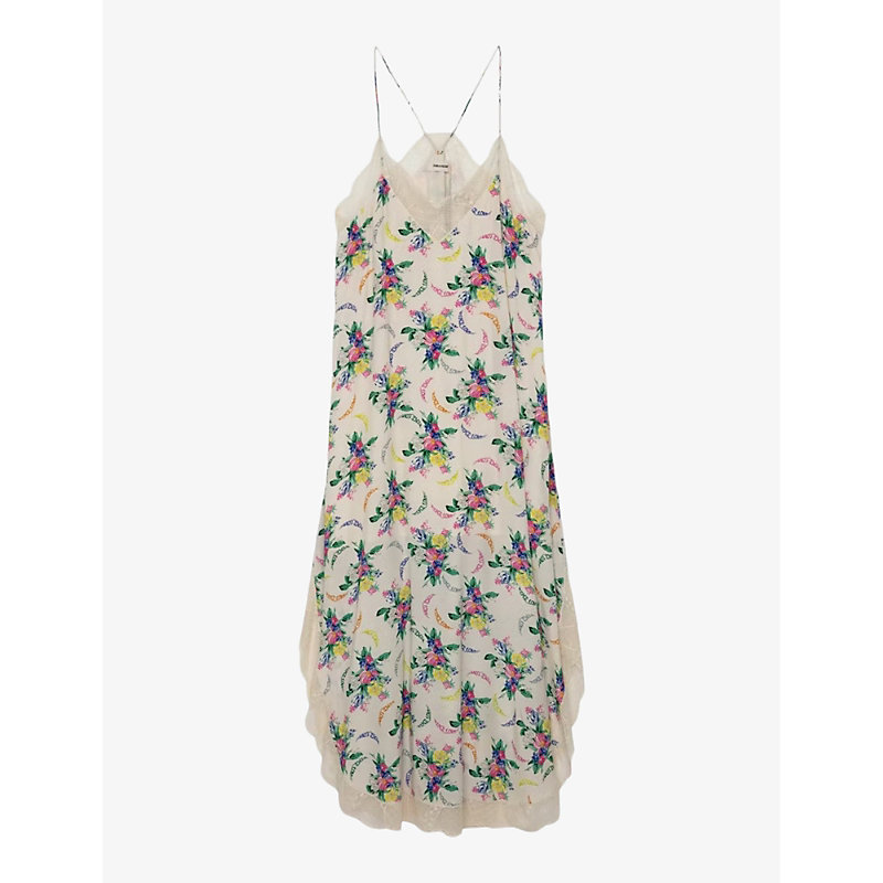 Zadig&Voltaire Womens Mastic Ristyl Floral-print Lace-embroidered Woven Midi Dress