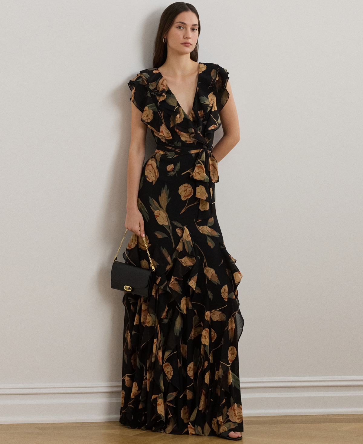 Lauren Ralph Lauren Women's Floral Ruffle-Trim Georgette Gown - Black Multi