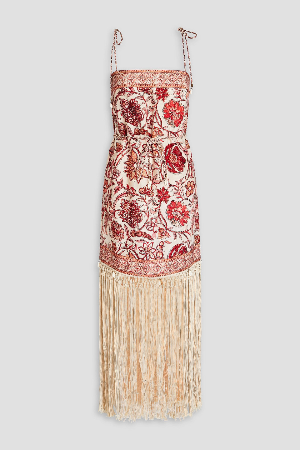 Zimmermann Fringed floral-print linen and macramé maxi dress
