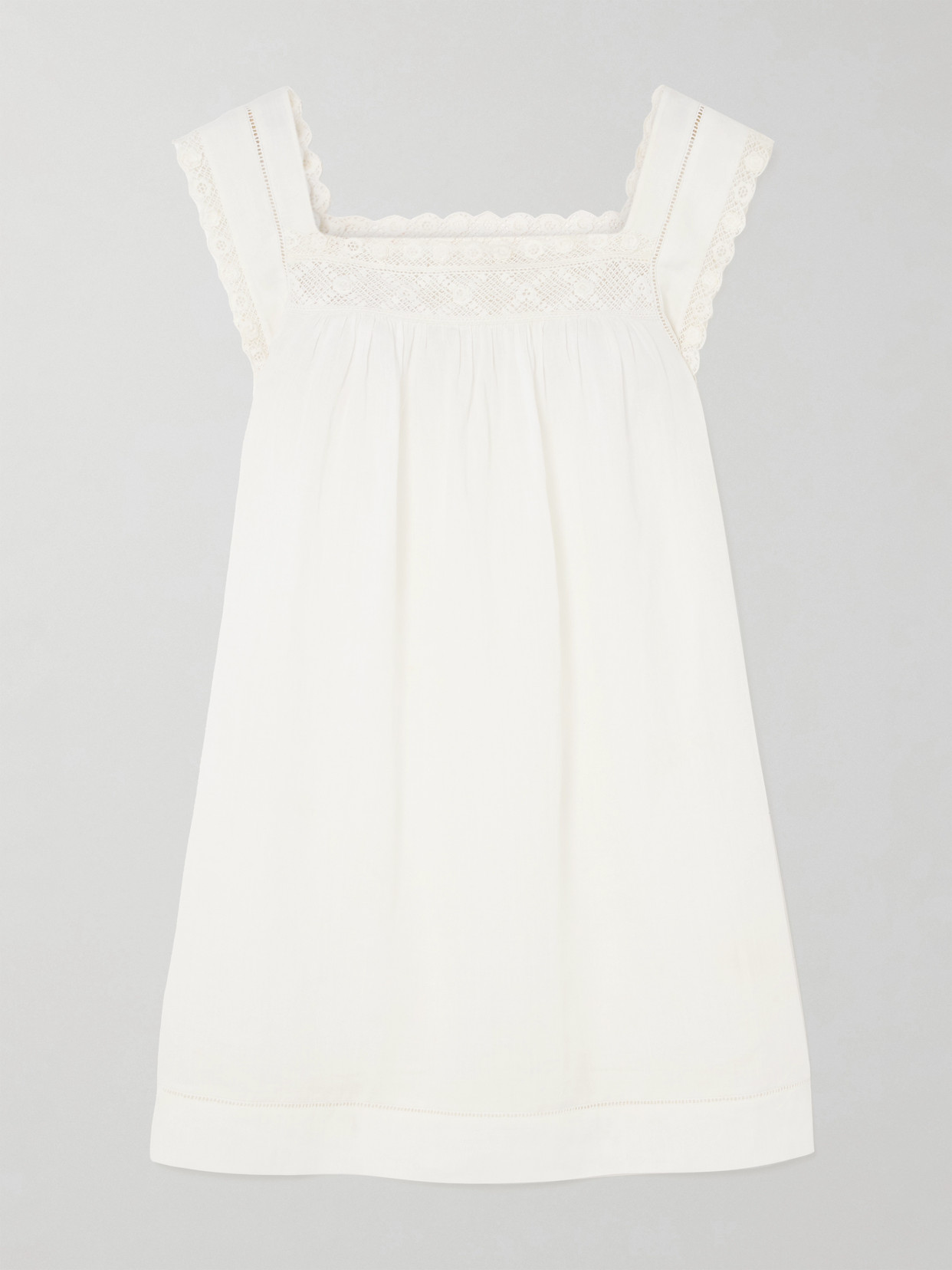 DÔEN Almadia Crochet-trimmed Ramie Mini Dress - White