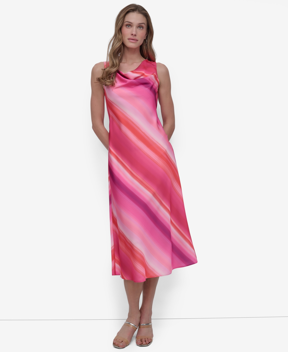 Dkny Petite Printed Cowlneck Sleeveless Midi Dress - Azalea Multi