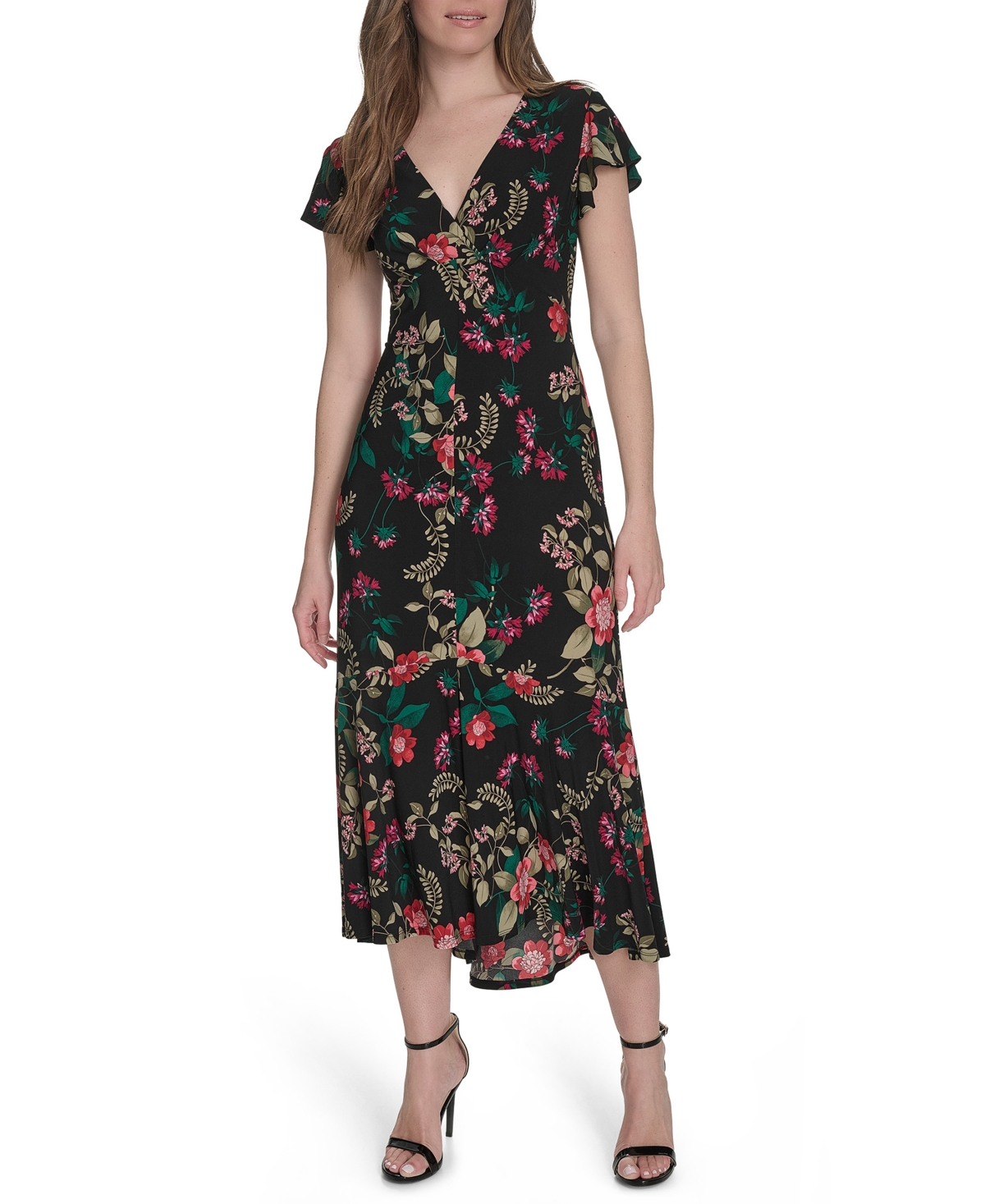 Tommy Hilfiger Women's Jersey Printed Flutter-Sleeve Midi Dress - Black Multi