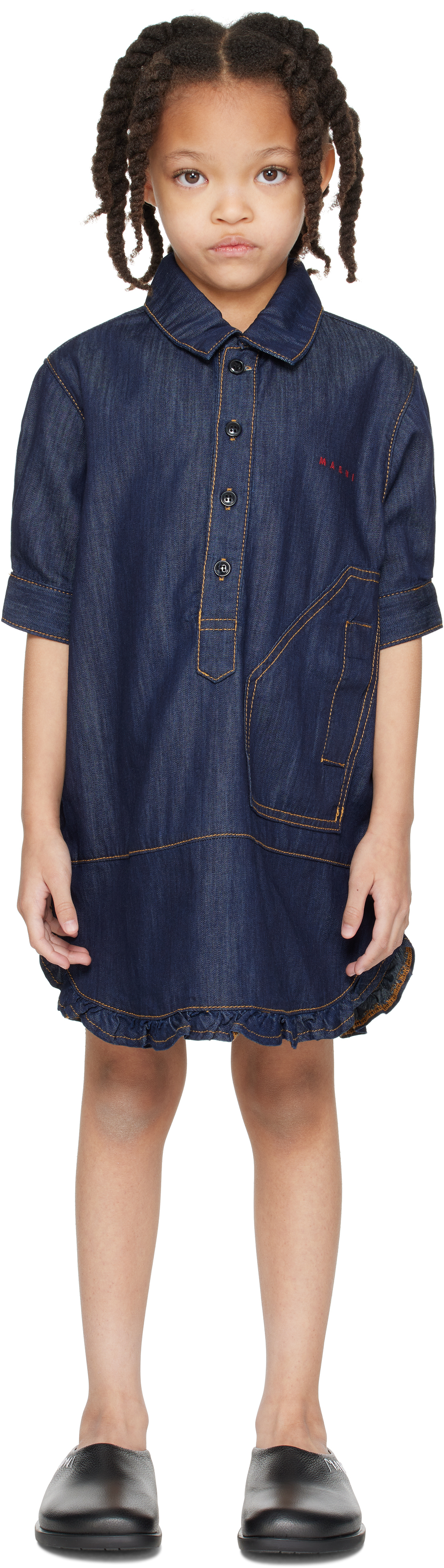 Marni Kids Navy Shirt Denim Dress