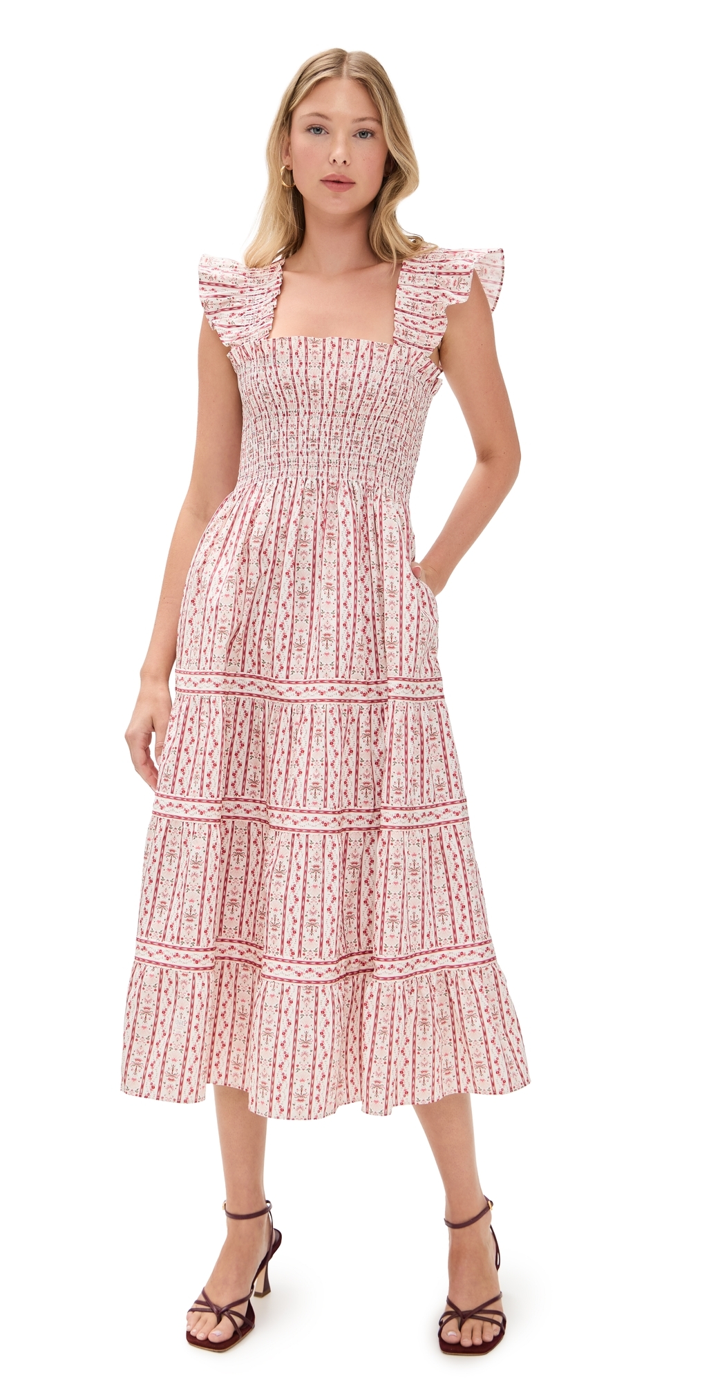 Hill House Home The Margot Dress Floral Block Stripe/Pink Multi