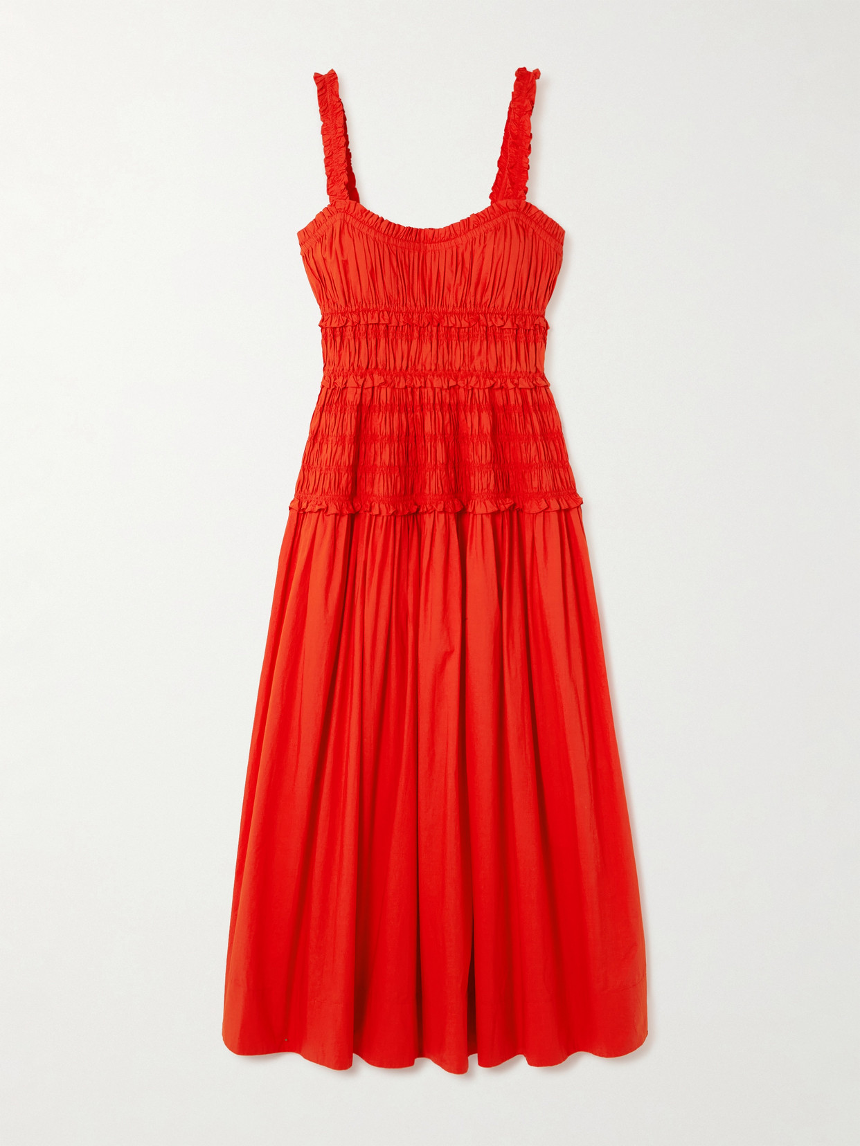 DÔEN Marianne Shirred Cotton-poplin Midi Dress - xx small