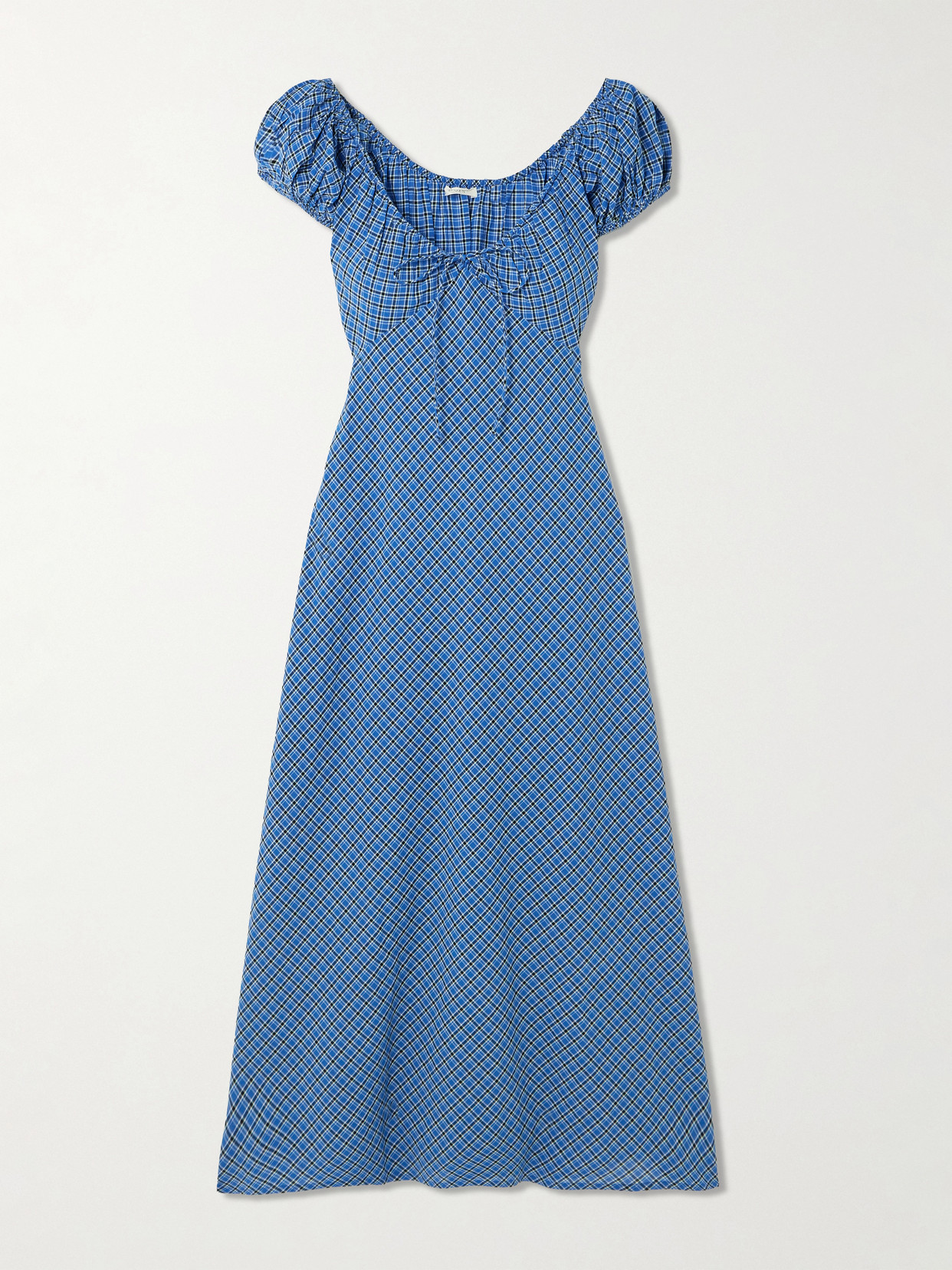 DÔEN Sofia Checked Organic Cotton-voile Midi Dress - Blue