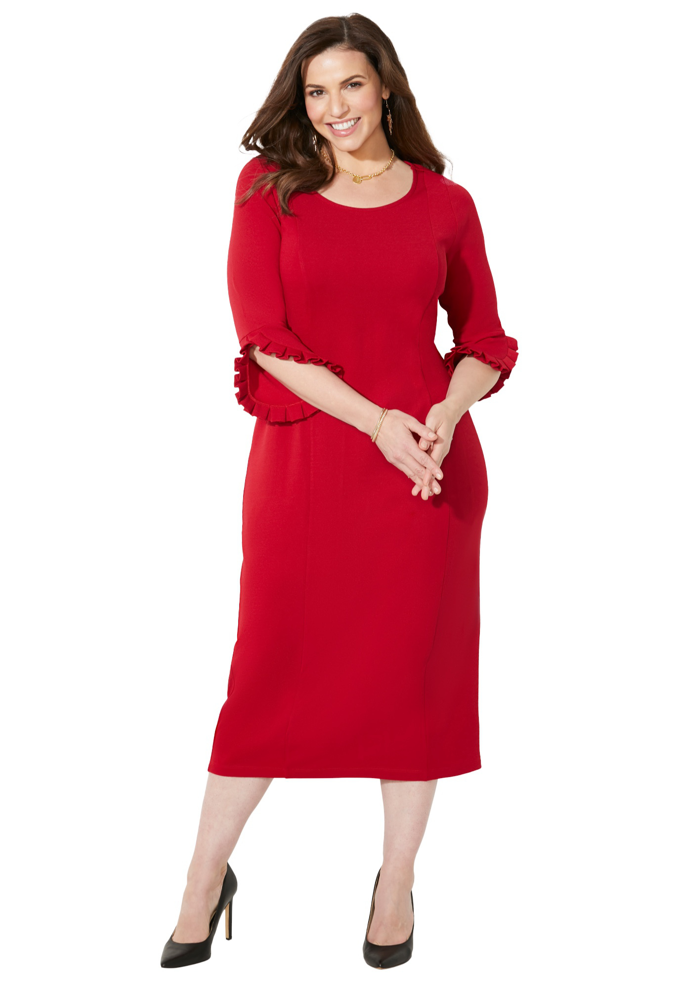 Plus Size Women's Ruffle Sleeve Shift Dress by Catherines in Classic Red (Size 2X)