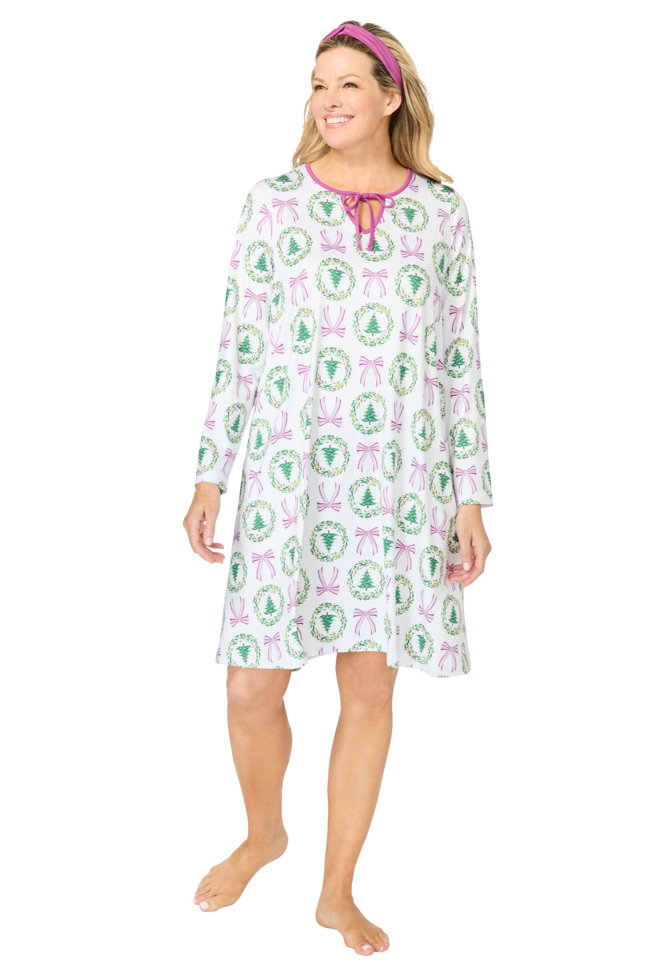 Plus Size Women's Dreams & Co.® Keyhole Gown & Headband by Dreams & Co. in White Holiday Tile (Size 1X)