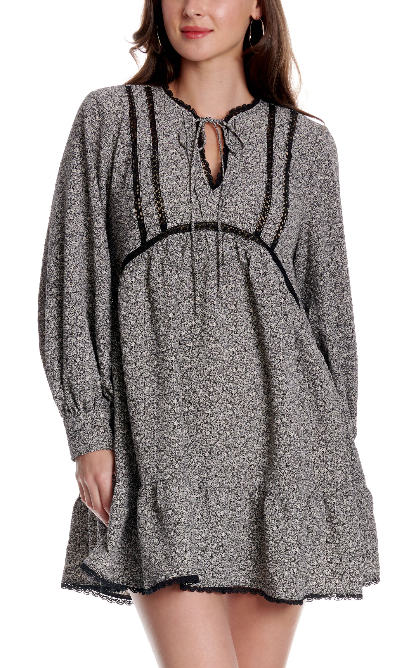 Yura Black & Cream Lace Trim Floral Print Dress - M - From Cavender's - Women's