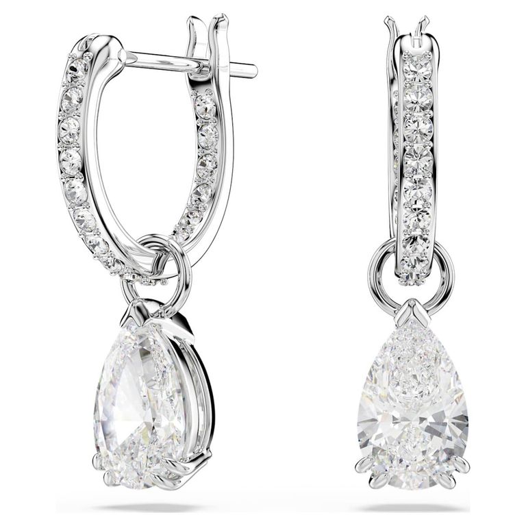 Stilla Drop Earrings, Pear Cut, Round Cut, Rhodium Plated - White - Swarovski Earrings