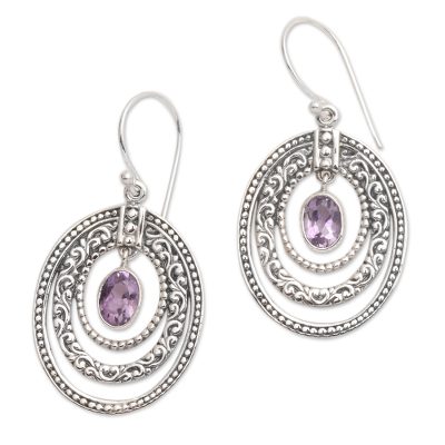 Inner Circles in Purple,'Concentric Circle Amethyst Earrings Balinese Motif'
