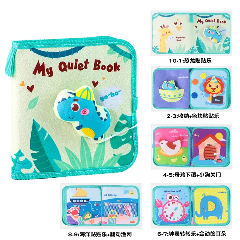 Montessori Busy Book For Toddlers Sensory Travel Toys & Preschool Learning Activity Books For Airplane & Car green Dinosaur