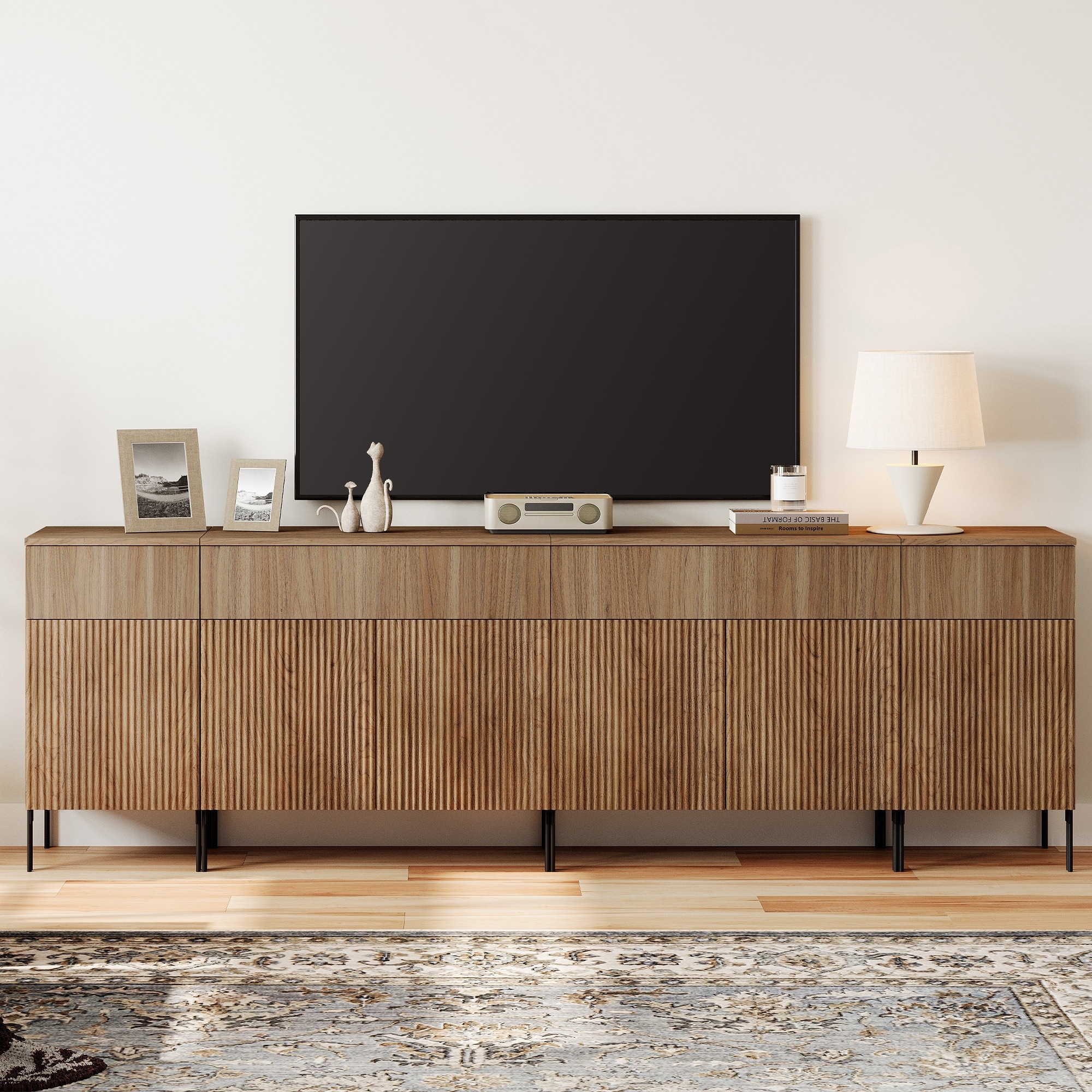 94.5" Modern Reeded Dresser TV Stand For Tvs Up To 100 Inch, Entertainment Center With Charging Station