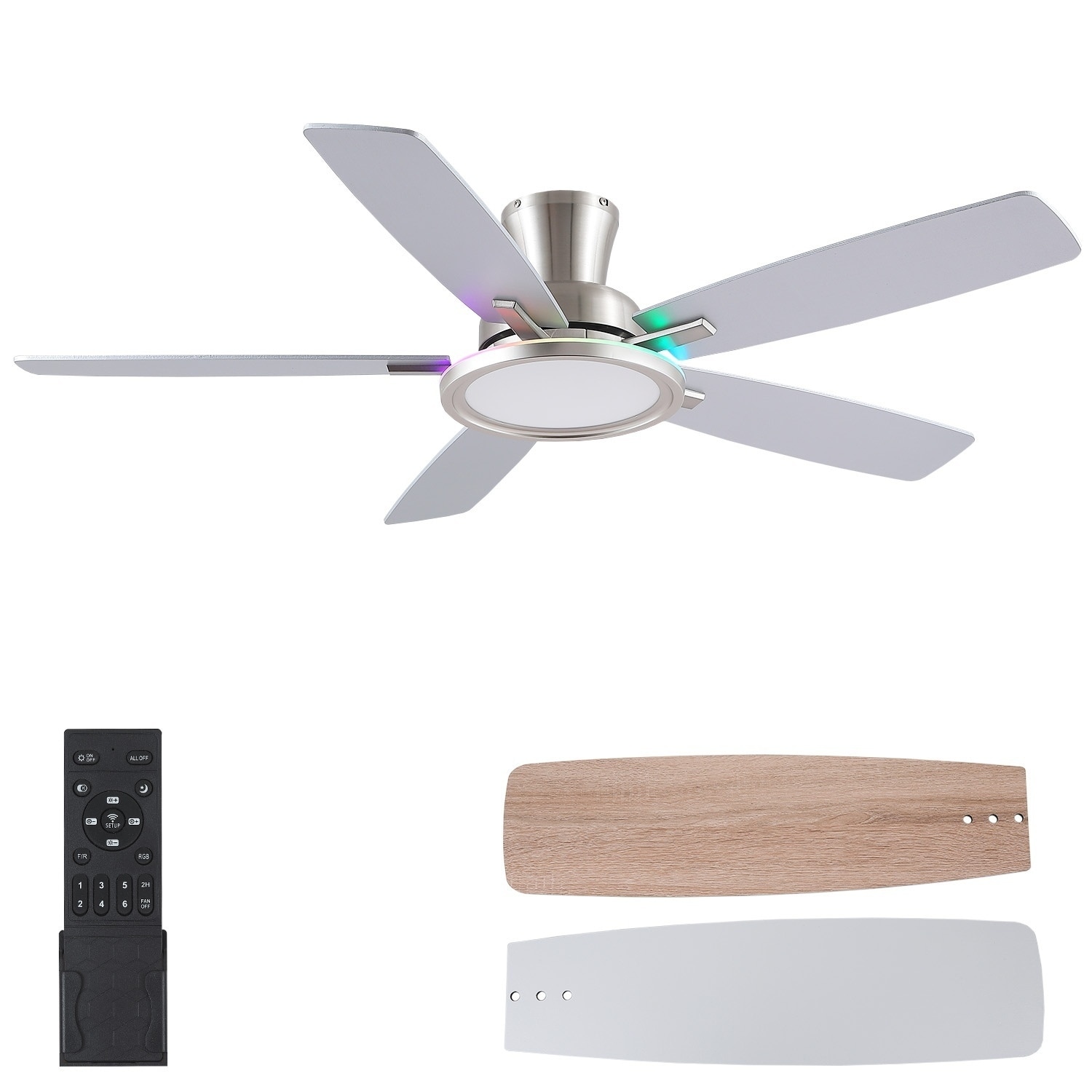 52 Inches RGB Flush Mount Ceiling Fan with Light,Reversible DC Motor for Bedroom Living Room Patio