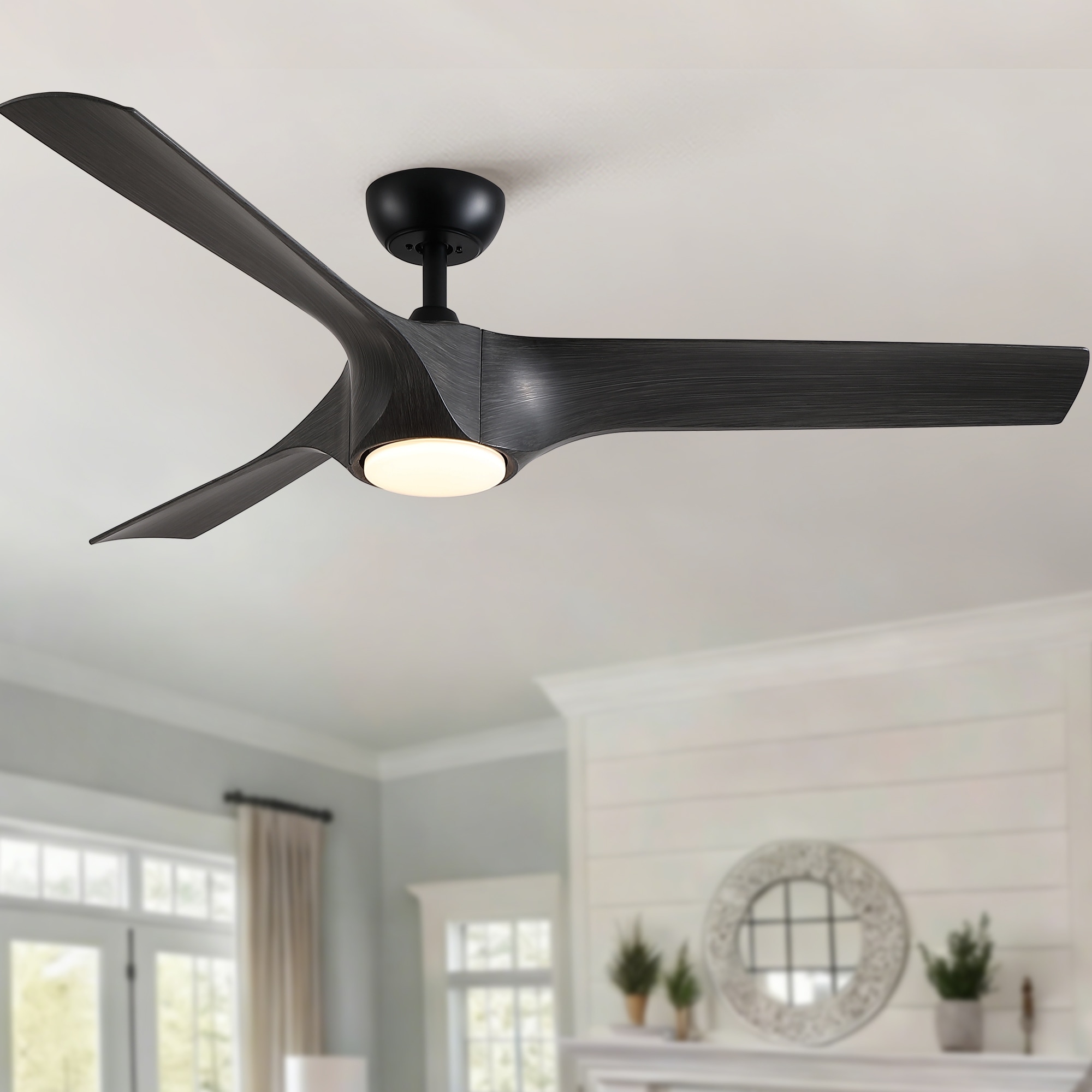 56" Modern Farmhouse Reversible Quiet Motor Ceiling Fan Light with Dark Gray ABS Blades