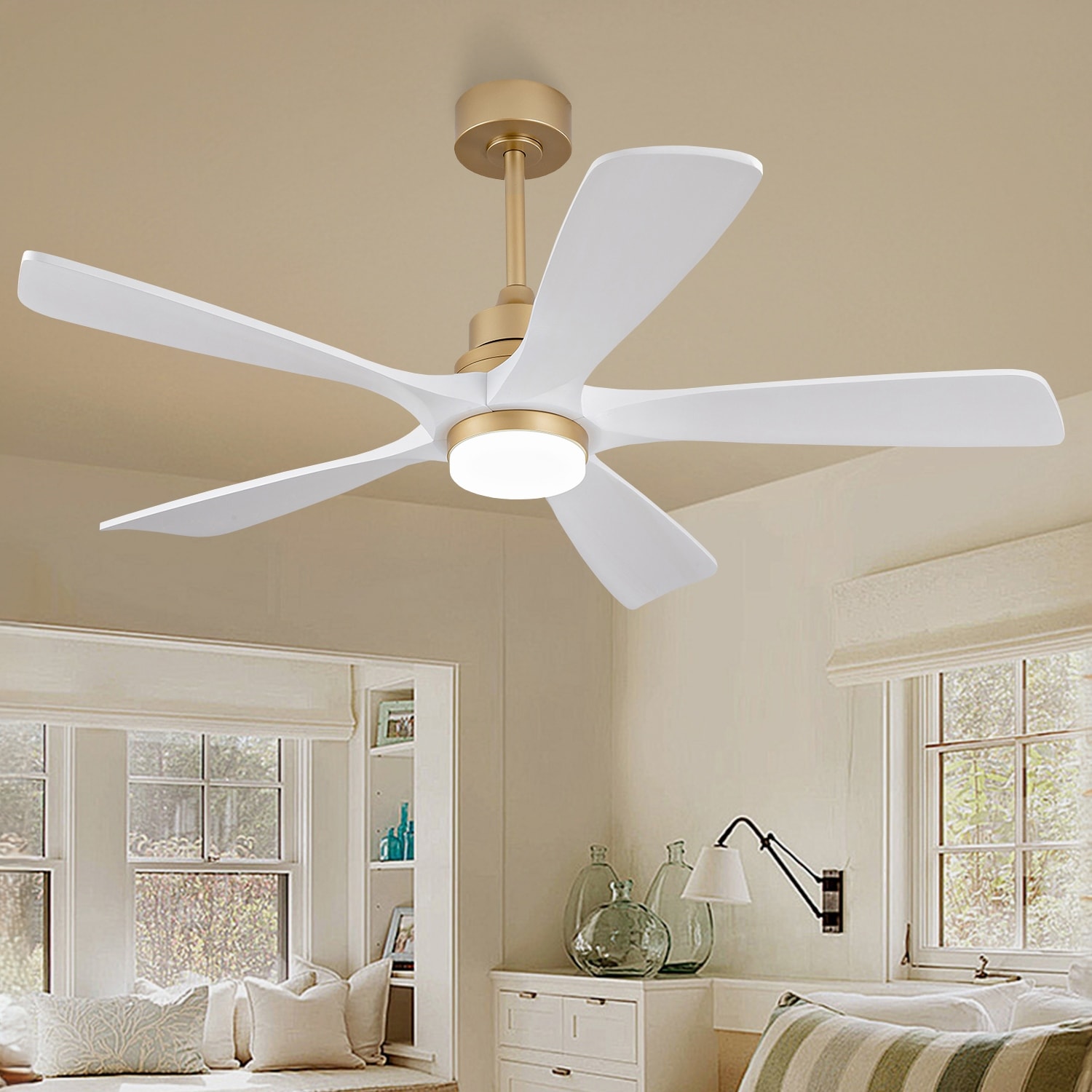 52" Ceiling Fans With Lights and Remote Control, Dimmable LED, 5 Solid Wood Blades,for Bedroom, Living Room - 52 Inches