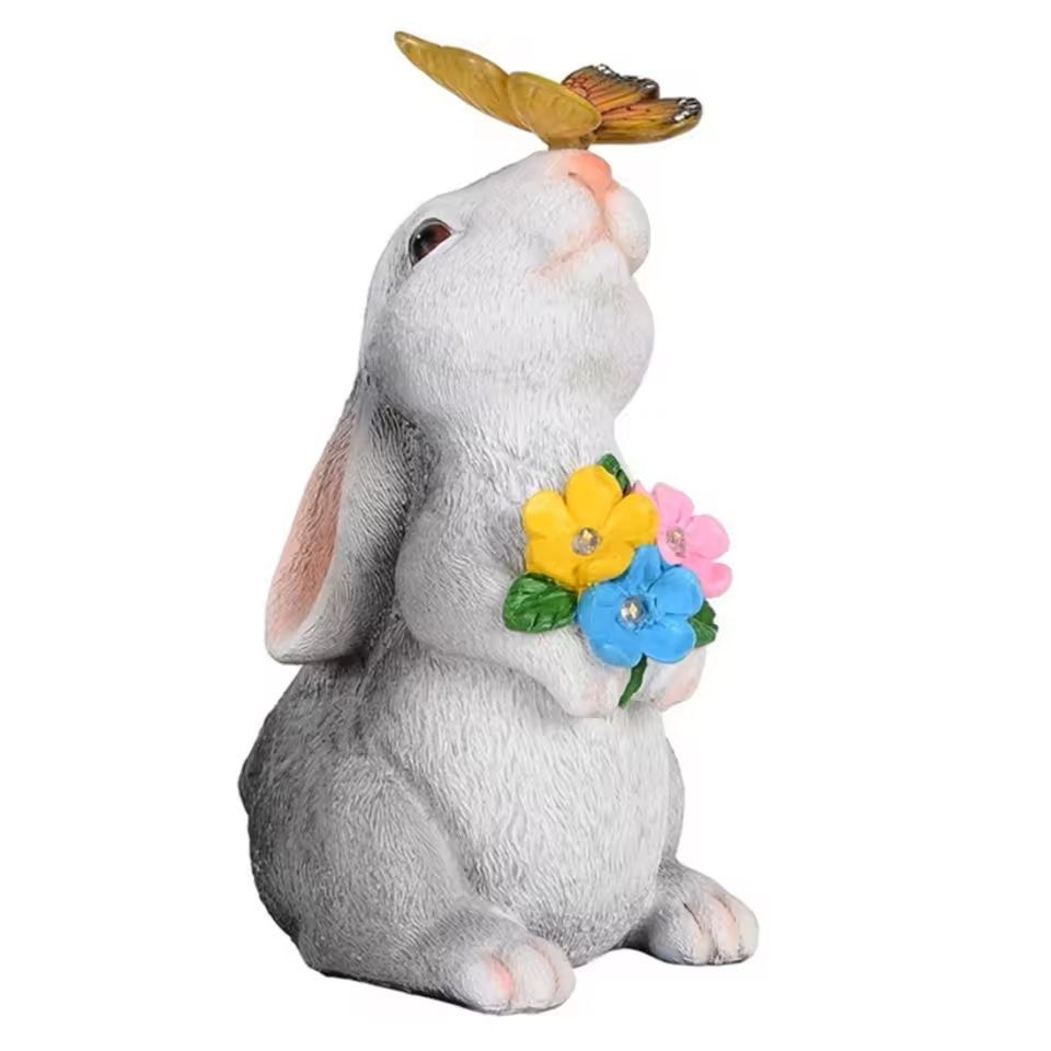 Solar Bunny Garden Statue With LED Butterfly Light b