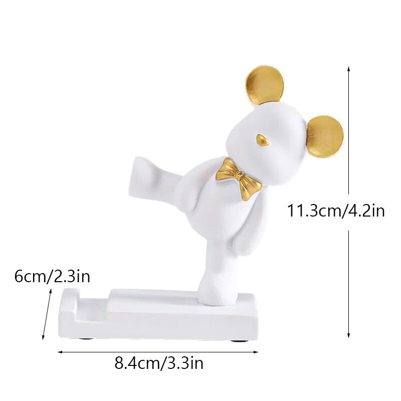 Resin Violent Bear Miniature Figurine: Cute Mobile Phone Stand For Home, Office, Living Room Unique Gift Idea B White